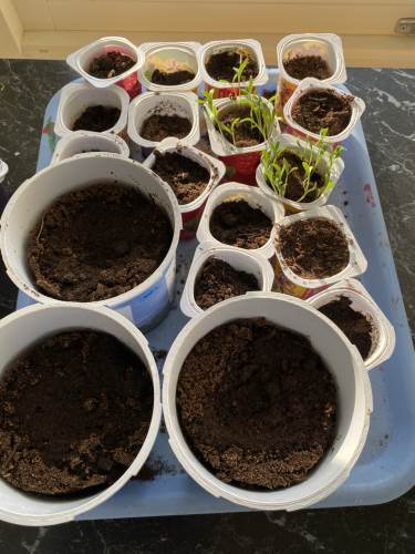 En viktig målsetting i dette arbeidet er selvsagt at barna skal ta del i hele prosessen. Når vi hadde bestemt oss for hva som skulle plantes, ble barna med på å plante/forkultivere inne på avdelingene, mens det fortsatt var kaldt ute. Spennende å se små frø spire å gro. Det ble plantet sukkererter, jordskokk, poteter, gresskar, urter og blomster. Foreldre ble også involvert i forhold til å kunne bidra med små plantekasser, youghurtbegere, eggekartonger m.m. Noen kom også med jordskokk og urter fra egen hage.