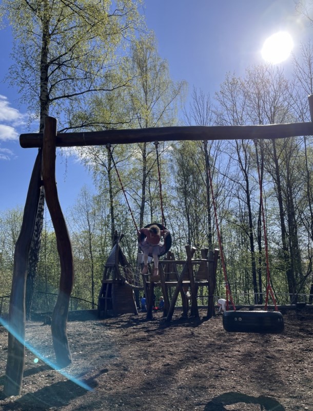 koser barna seg med sykling, klatring i klatrestativet, huske, sandkasselek og mye