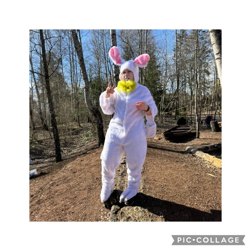 Etter påskefrokosten gikk vi ut i lilleskogen og lekte jakten på påskeharen.