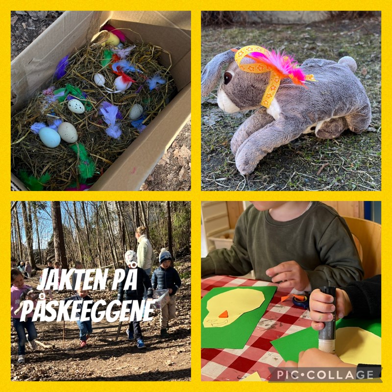 Det ble fantasifull fortelling om påskereven som hadde tatt eggene, og barna deltok i å finne dem tilbake. Når eggene var funnet fikk barna pynte dem med maling, glitter og fjær.