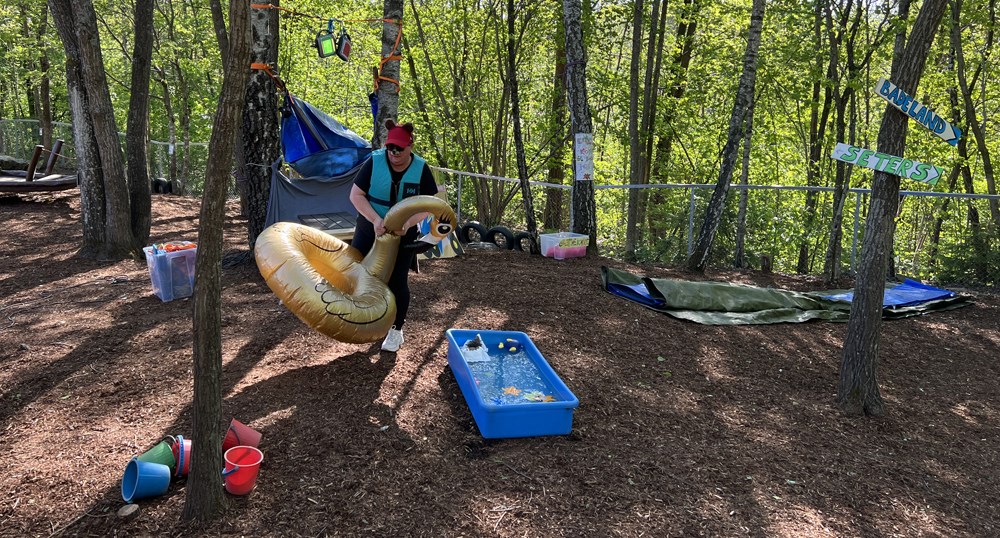 De går bort til en liten sklie og så sklir de - mange ganger.