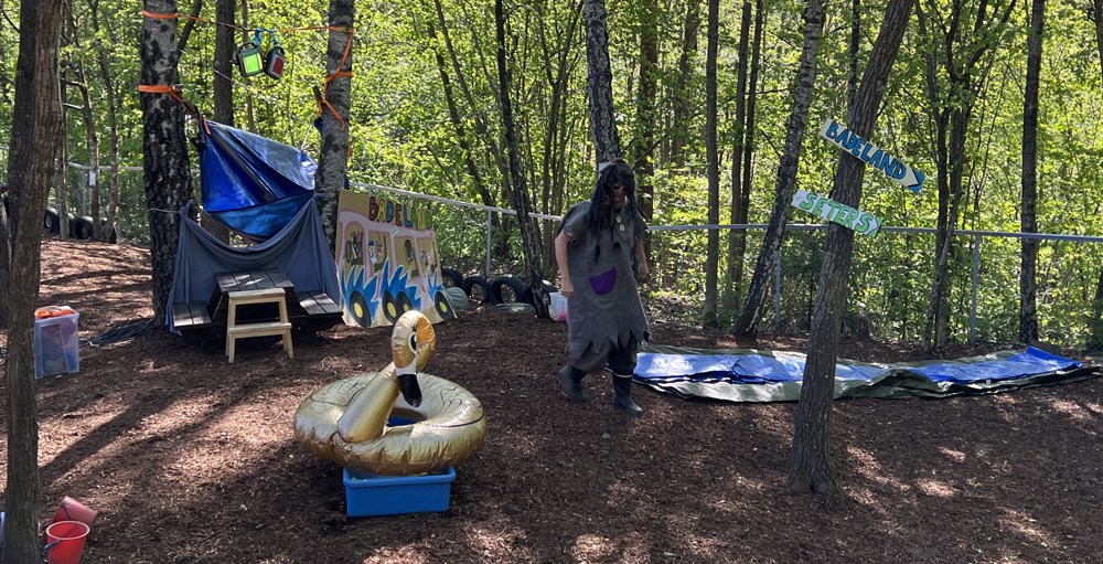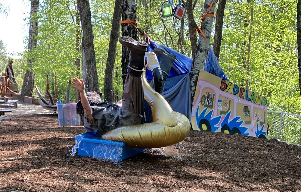 ..og så kommer han til enden av sklia der den største bukken holder sklia sånn at Trollet kommer fykende ut og forsvinner ut av Badeland.