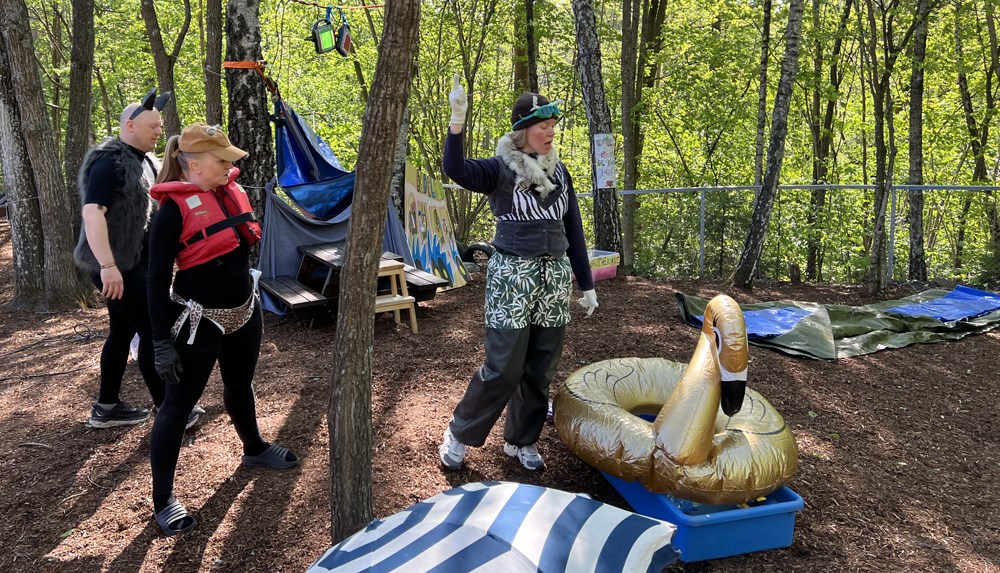 "Men nu måste ni ju gå och bada och leka – det är fortfarande långt kvar till stängningsdags" sier Beveren.