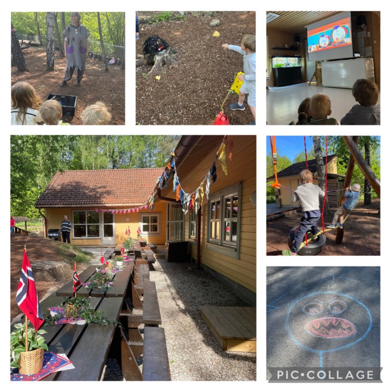 Årets temaarbeid med Bukkene Bruse ble avsluttet med en vårfest midt i mai. Vi gikk avdelingsvis rundt til ulike aktivitetsposter på uteområdet, før vi gikk på «kino» og så filmen om bukkene Bruse i badeland. Deretter var det lunsj på langbord ute med plass til alle barna i hele barnehagen.