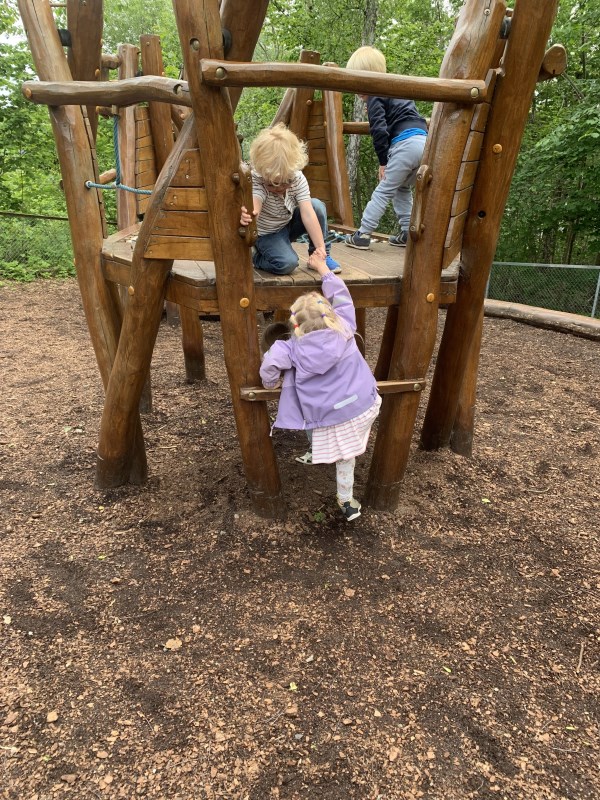 utetiden til de store, at de største småbarna gjerne vil ut å leke med de. De