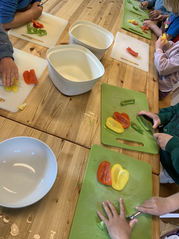 næringsrik mat, blant annet godt med grønnsaker. Barna er veldig glad i å hjelpe til med matlaging, mange er kanskje vant til det hjemmefra?!