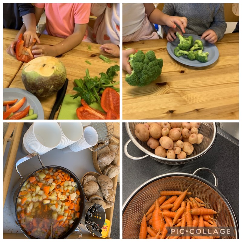 Vi har lagd grønnsakssuppe, på høstfesten. Og