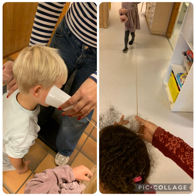 krøllet, glass som «skålte», lego som ble «rotet i», knipselyd osv..) Vi har også snakket endel om kroppen innvendig. De ulike organene, skjellett og blod. Barna er nysgjerrige og vi opplever at de får en fin begynnende forståelse av kropp. Vi har lyttet i pappkrus festet med en hyssing, med lang avstand. Da bærer lyden helt til andre enden! Spennende...