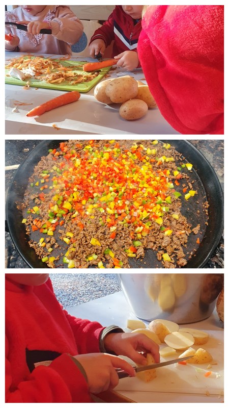 mat på bål. Sammen med Regnbuen stekte vi kjøtt og grønnsaker på bål. Dette ble