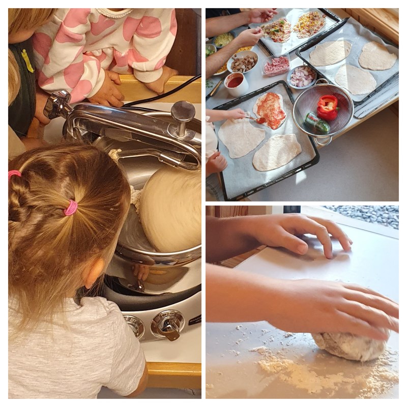 bursdagsbesøk, laget fargerik fullkornpizza og tilberedt mat på bål. Hele tiden