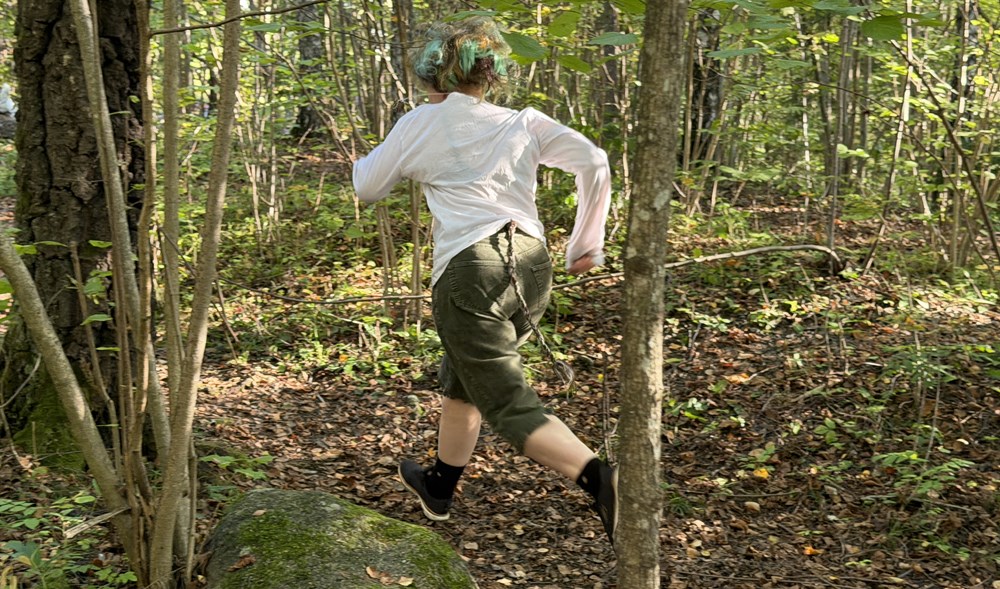 sikkert låne noe av dem..» og så plutselig løper han avgårde.