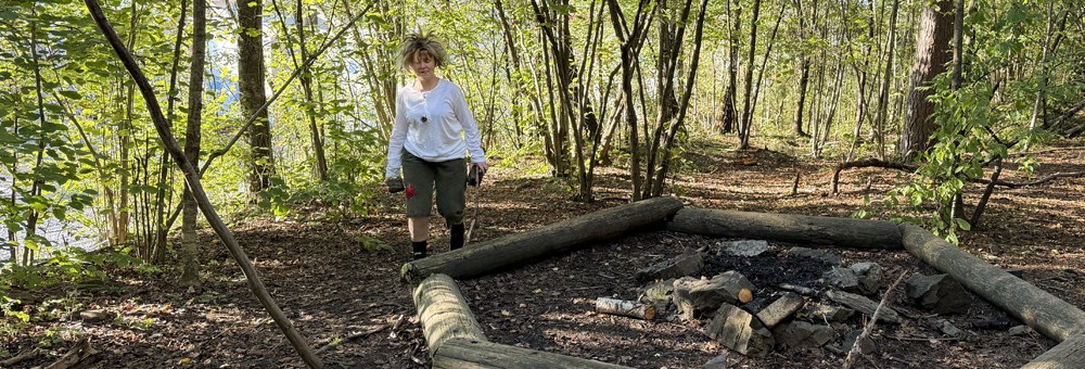 så langt – han har bare lyst til å leke litt ved bålplassen når det ikke er