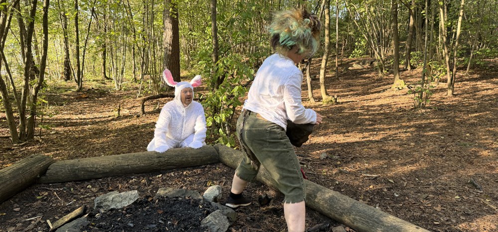 familien er ute i skogen, langt fra mennesker, så kan de endelig gjøre litt