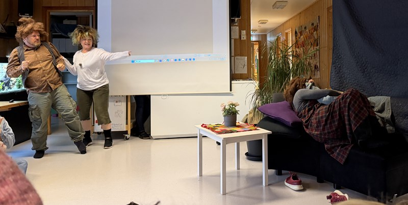 "Ja, SE da" sier Tambar og peker på mamma som ligger på sofaen.