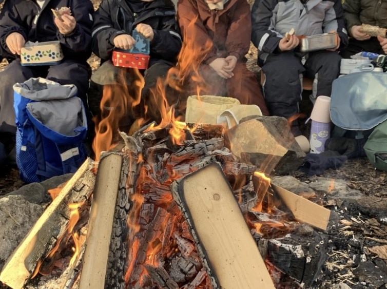 bålet. Barna koste seg veldig, de synes også det er stas med egen matpakke, så