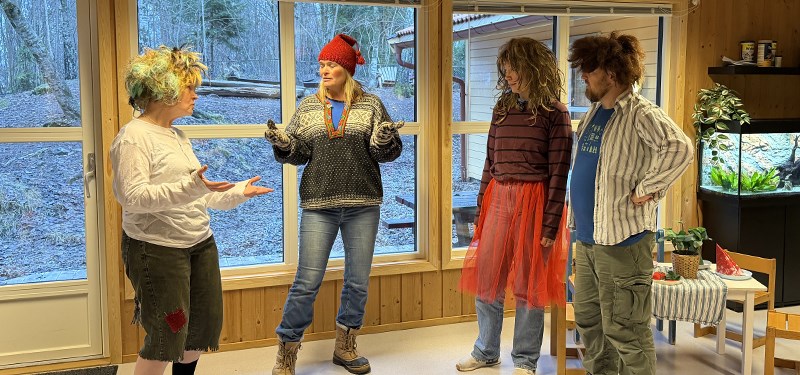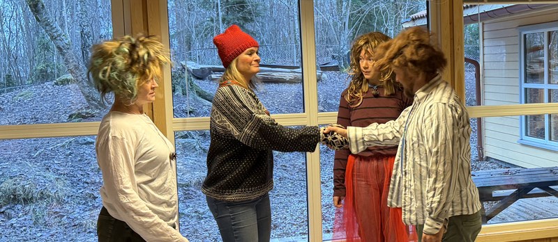 Inn kommer Gurine og Tambar og de har med seg den lille nissen.
