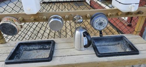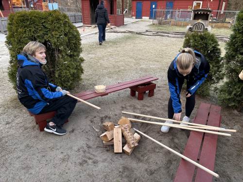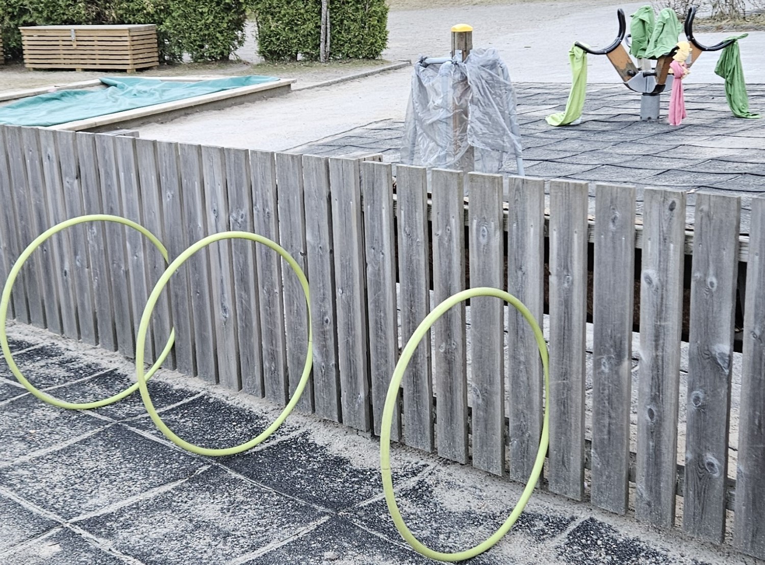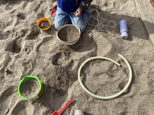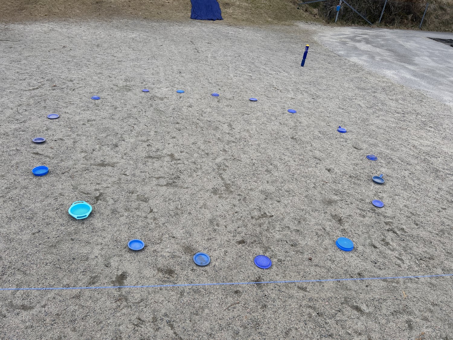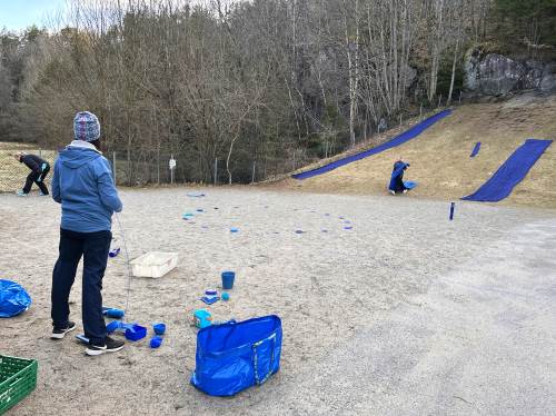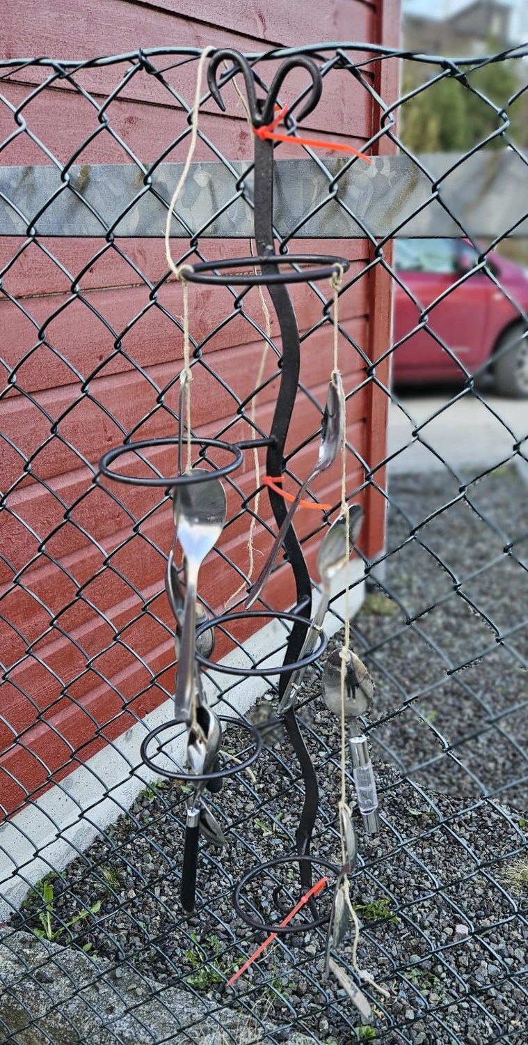 -Vi fikk i oppdrag å samle inn ulike materialer som skulle tilføyes på de ulike områdene, ting i fargen blå, ulike ting av tre, ulike stoff, plast og metallgjenstander. Materialene skulle være fleksible, og vi jobbet i grupper med å finne spennende måter å plassere det som skapte forstyrrelser i uteleks-området for å skape undring hos barna og få noe nytt til å skje.