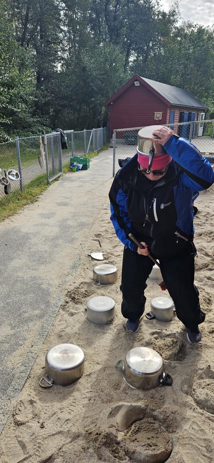Med dette som utgangspunkt sendte vi inn en søknad for å få med UIA på laget, noe vi fikk innvilget, og vi fikk med oss Birgitte som underviser i drama, og Anne Sofie som.... . De sendte først ut en digital undersøkelse som hele personalet svarte på, der de bl.a kartla hva som vi opplevde kunne være til hinder for den gode, spennende leken ute. Med utgangspunkt i besvarelsene lagde de en plan for prosjektet, og vi brukte tid på planleggingsdager og personalmøter gjennom hele 2025 til jobbe med dette.
