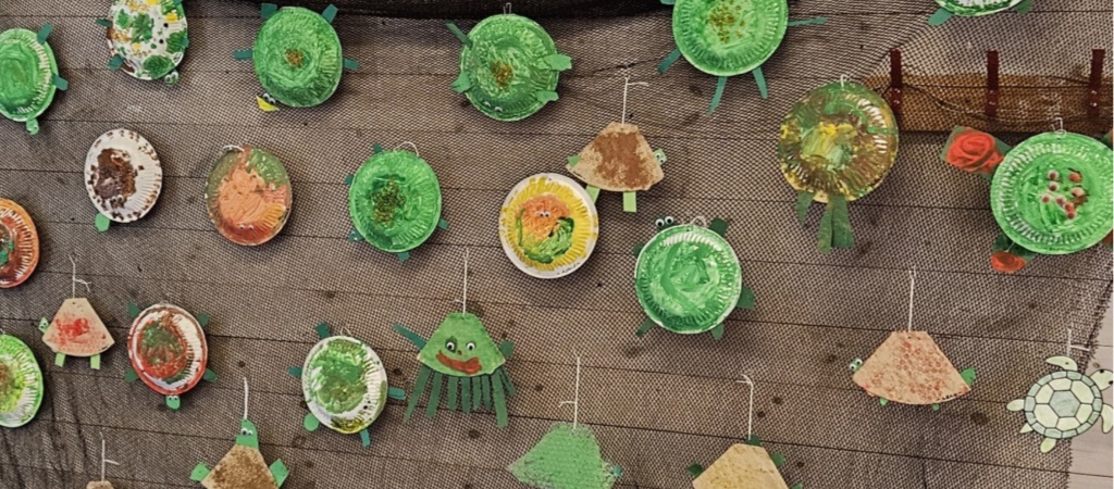 Vi inviterte foreldre og søsken til kafé, fiskedam og kunstutstilling her i barnehagen.