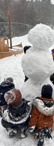 barna varme seg, spise mat, leke og holde på med ulike aktiviteter.