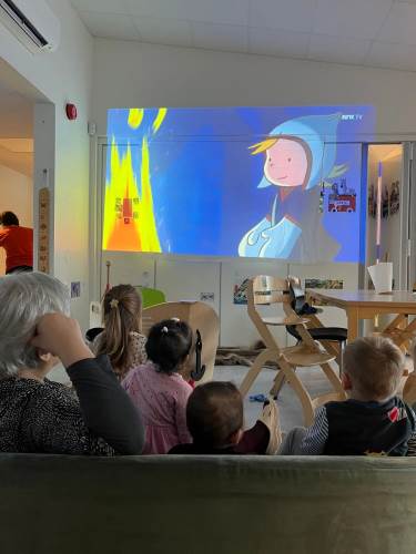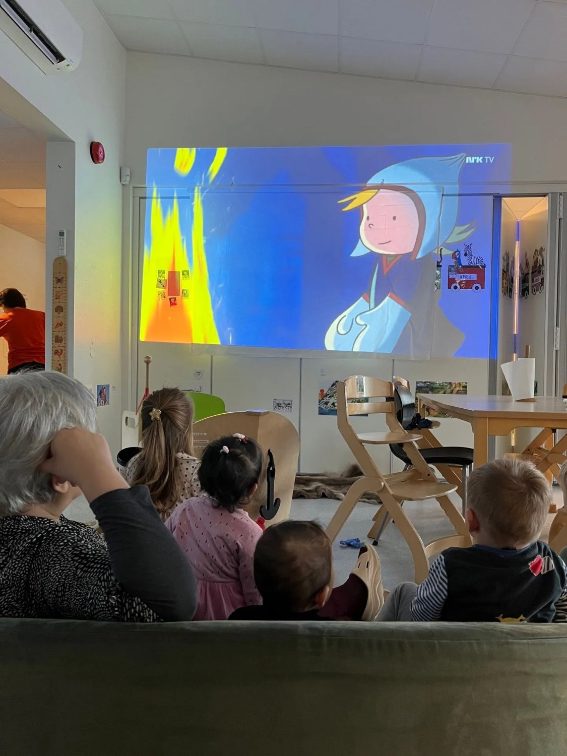 Vi så blant annet på filmklipp fra reindrift, nordlys og en liten tegnefilm om to samiske barn som skulle finne nordlyset. Barna fikk også lytte til musikk og joik i ulike sjangre, noe som skapte nysgjerrighet og engasjement hos de yngste.