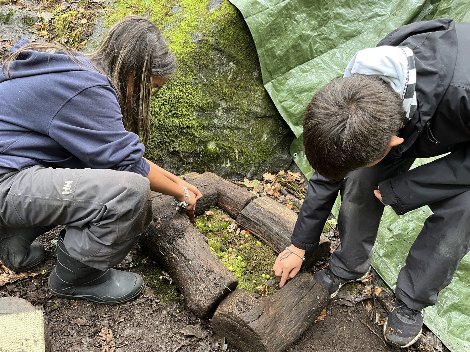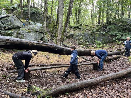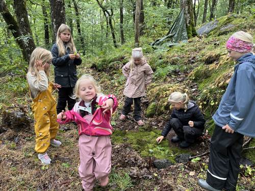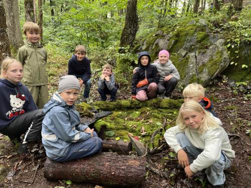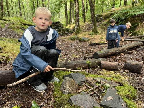 Det var første gang barna på 1. trinn var på sin faste uteskoleplass i skogen over veien. Det er noen år siden 5. trinn var her, så de fikk mange gode minner fra de var "små":) Faddergruppene fikk i oppgave å lage bondegård. De var gode til å samarbeide, og det var rene idyllen i en fantastisk fin skog.