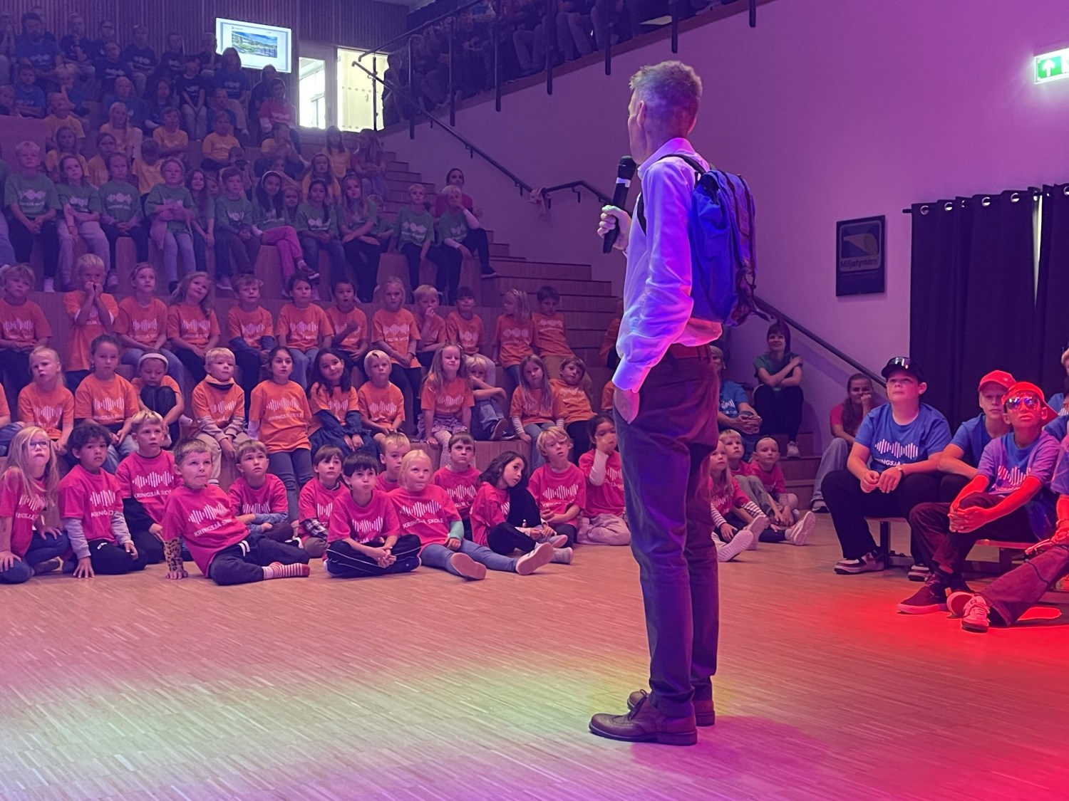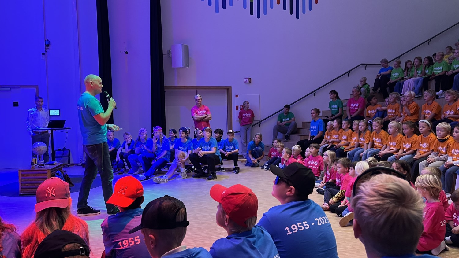 I år er skolen vår 70 år. Hurra! 19. september samlet vi hele skolen i amfiet.