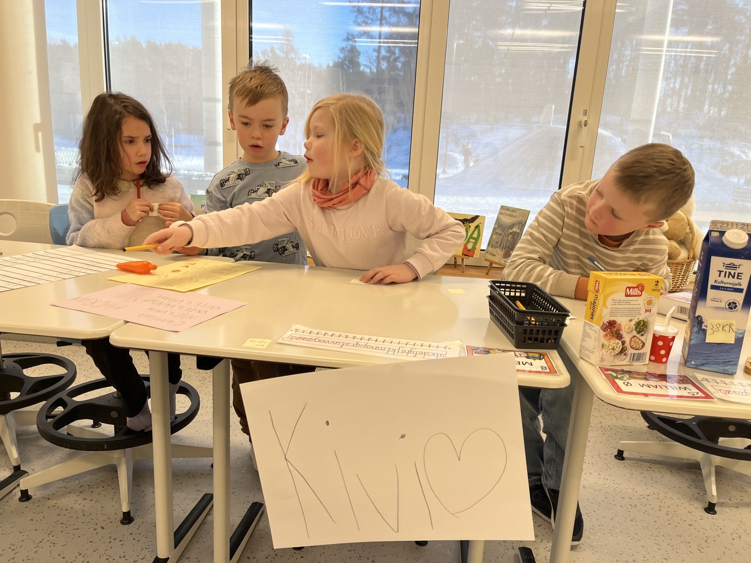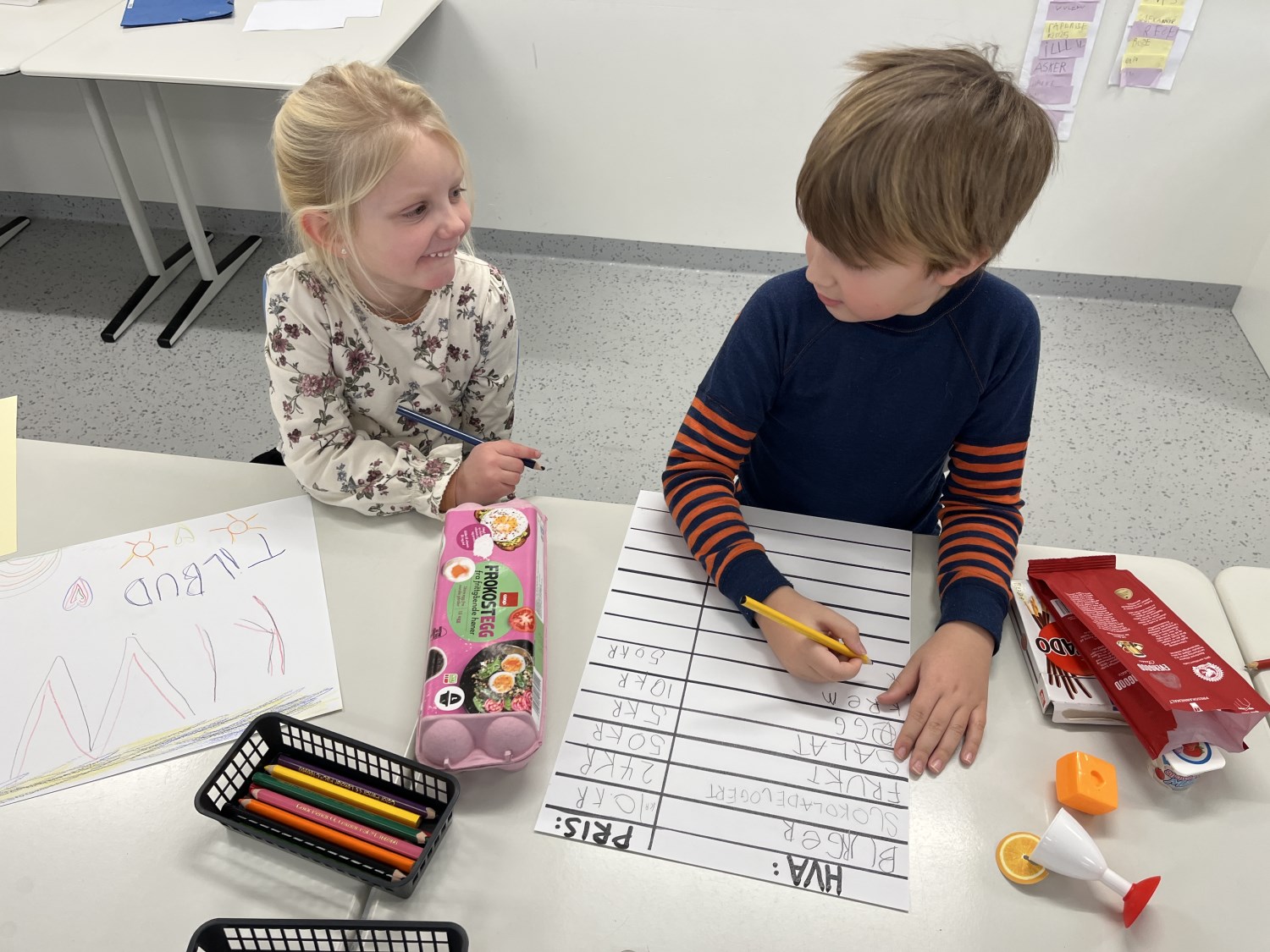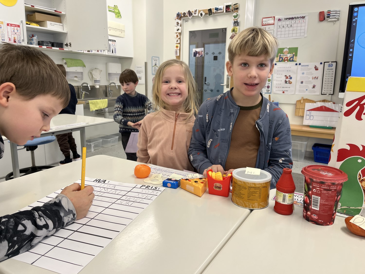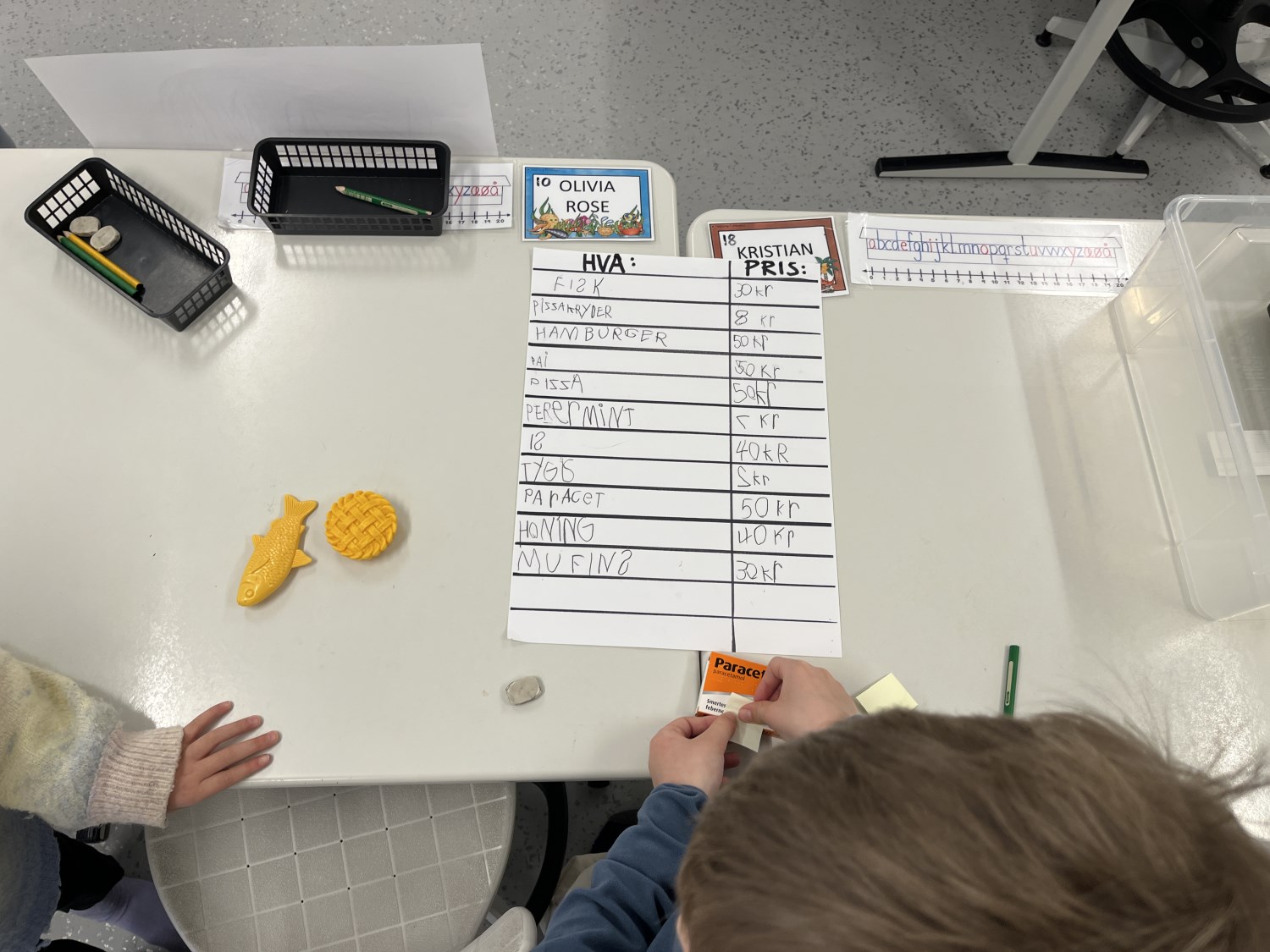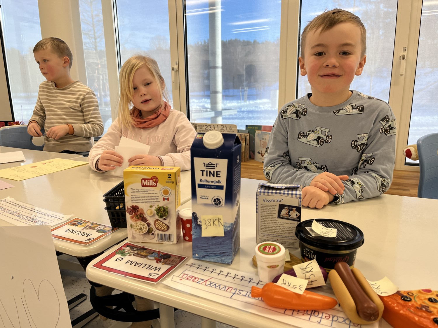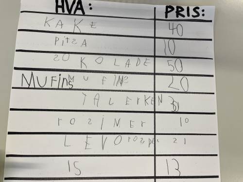 Barna viste stort engasjement og kreativitet. Det ble skrevet prislister og plakater. Når varer skulle kjøpes måtte de regne og veksle, og mange trengte en tur i banken for å låne mer penger. Noen husket faktisk på å komme tilbake til banken med penger de hadde lånt:) Det var både gøy og lærerikt å leke butikk!
