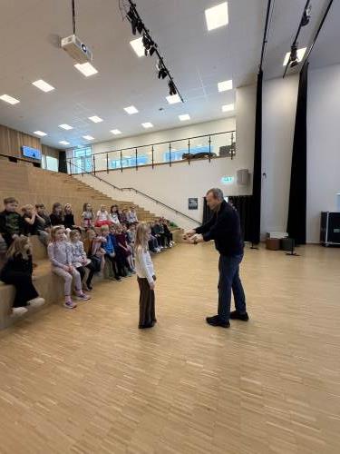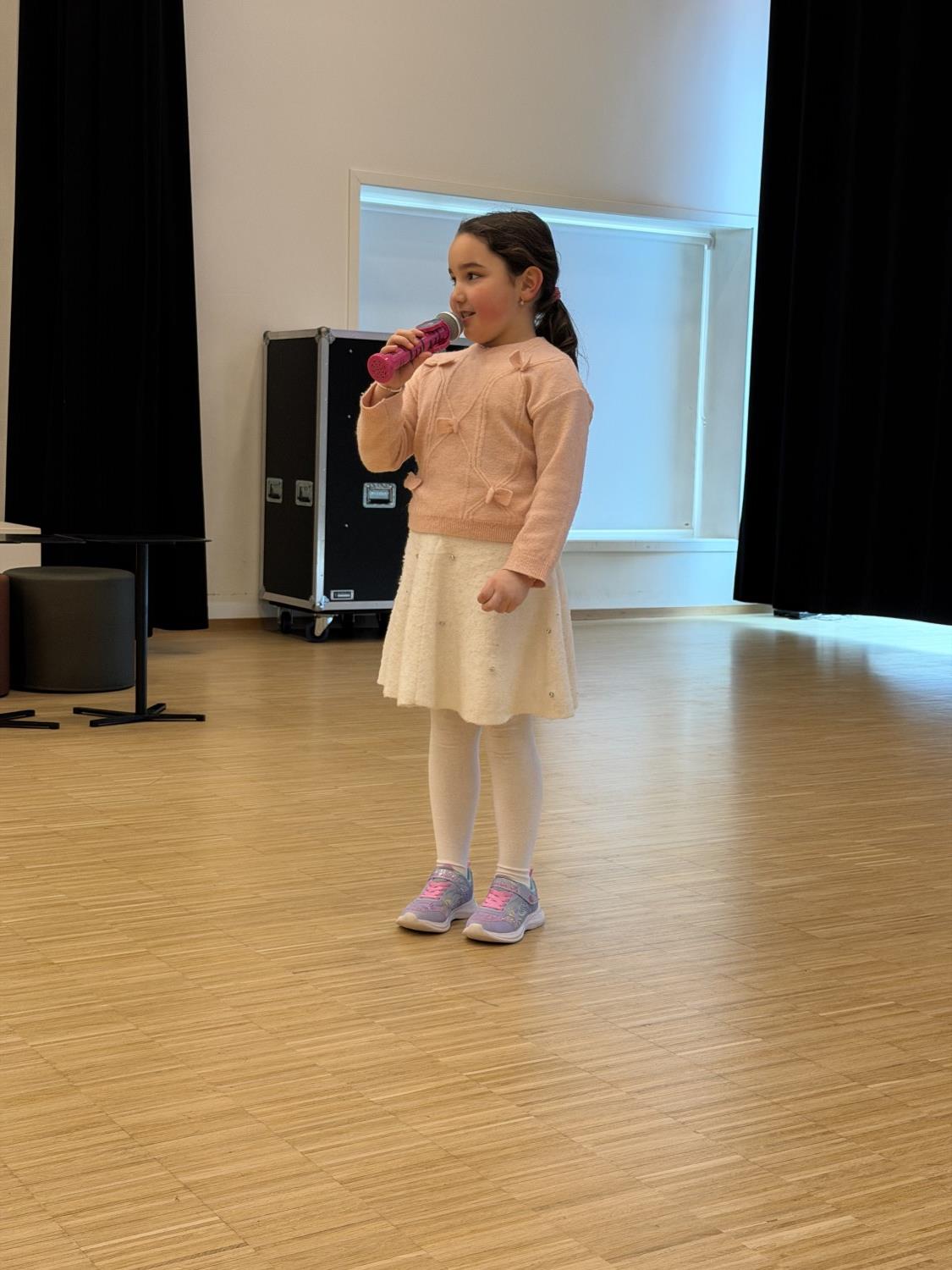 Det ble en kjempefin åpen scene for elevene på 2.trinn. Det var flere elever som utfordret seg selv med å enten synge en sang, danse eller spille et instrument foran det andre elevene på trinnet. De var supertøffe og gjennomførte med stor stil. Det var også en mulighet til å vise frem en leke eller noe annet som betydde noe for eleven. De måtte snakke litt foran publikum med Henrik, som var programleder for anledningen. Dette skal vil gjøre igjen!