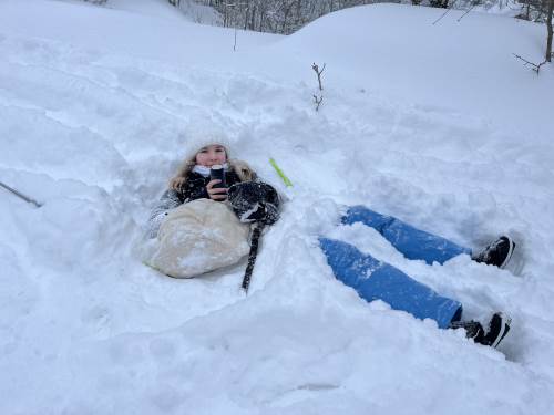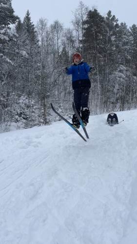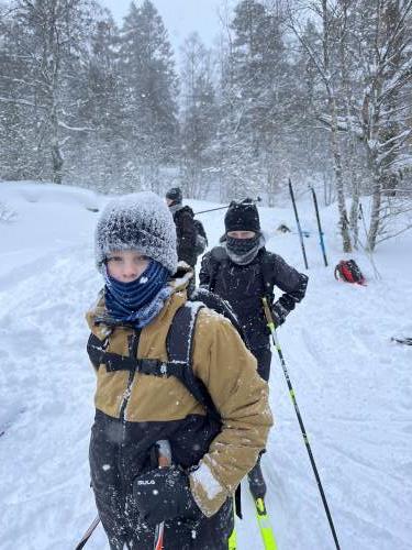 På tirsdag var det igjen på med skiene og vi gikk en ny tur til et sted som heter Røyneland. Der var det skiskyting, skihopping og alpint med langrennsski som stod på programmet. Både mandag og tirsdag spiste vi lunsj i en lavvo i nærheten av leirskolen.