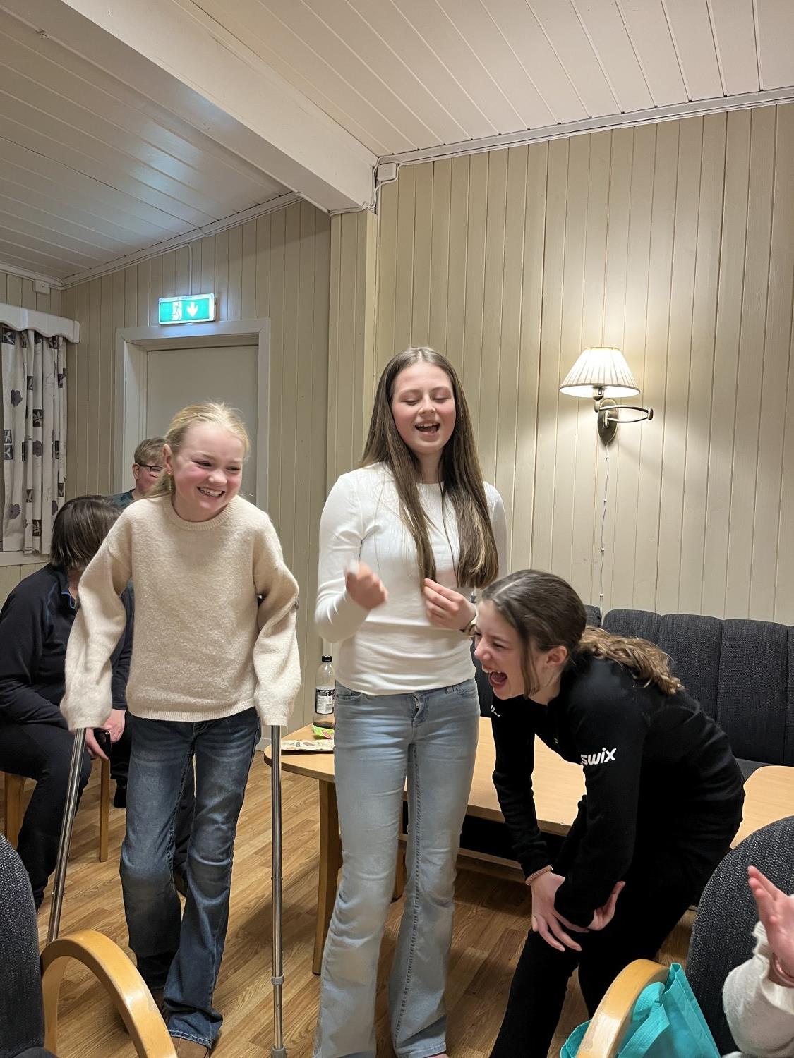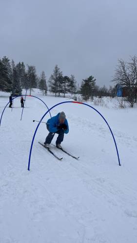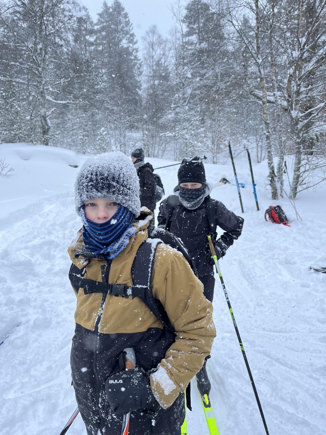 På mandag gikk vi ei løype i nærheten av skolen. Opplegget var tilpasset slik at "ekspertene" fikk gå flere runder, mens andre fikk litt mer hjelp og tips. Generelt var nivået høyt og alle fikk det til. På kvelden var det refleksløype med truger og lommelykt.