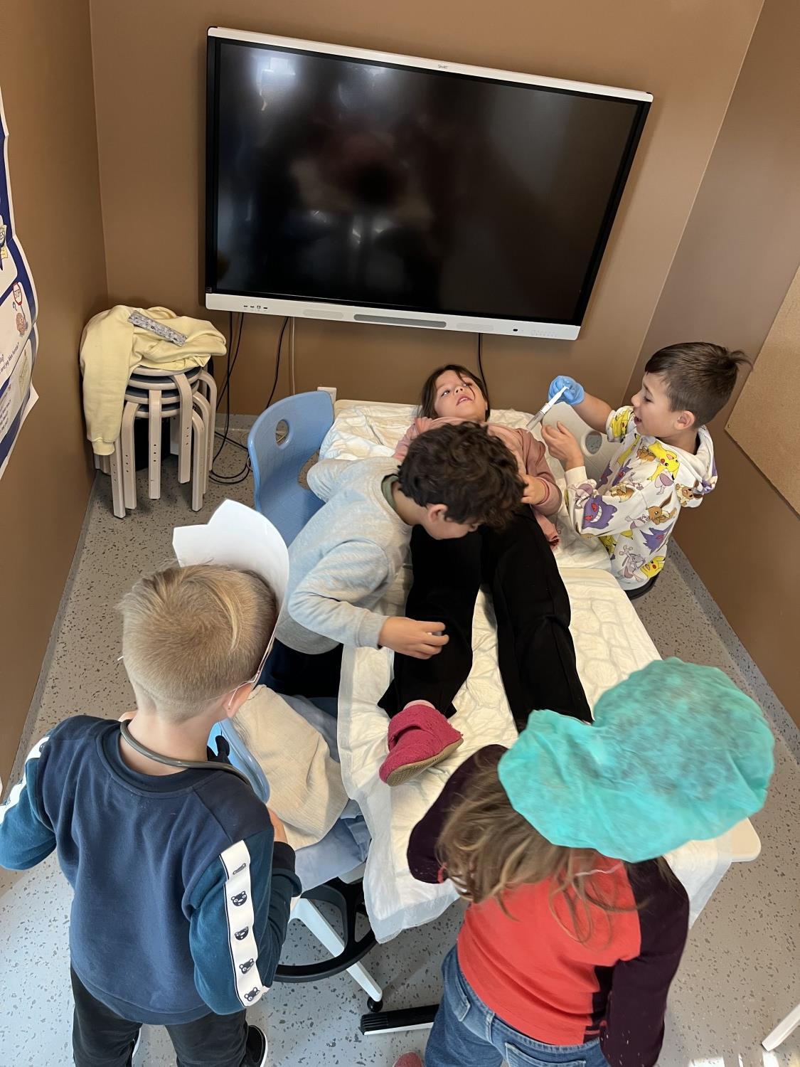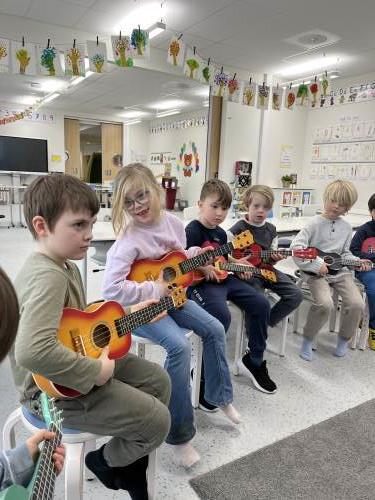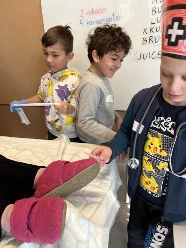 Med bilder fra variert undervisning i løpet av mars måned vil vi ønske alle en god påskeferie. På bildene ser dere den fine gjengen på 1. trinn der de leker sykehuslek, danser, spiller ukulele, har uteskole, leser, regner, skriver, koder med bluebots, er på vårsamling i amfiet og har bamsedag.