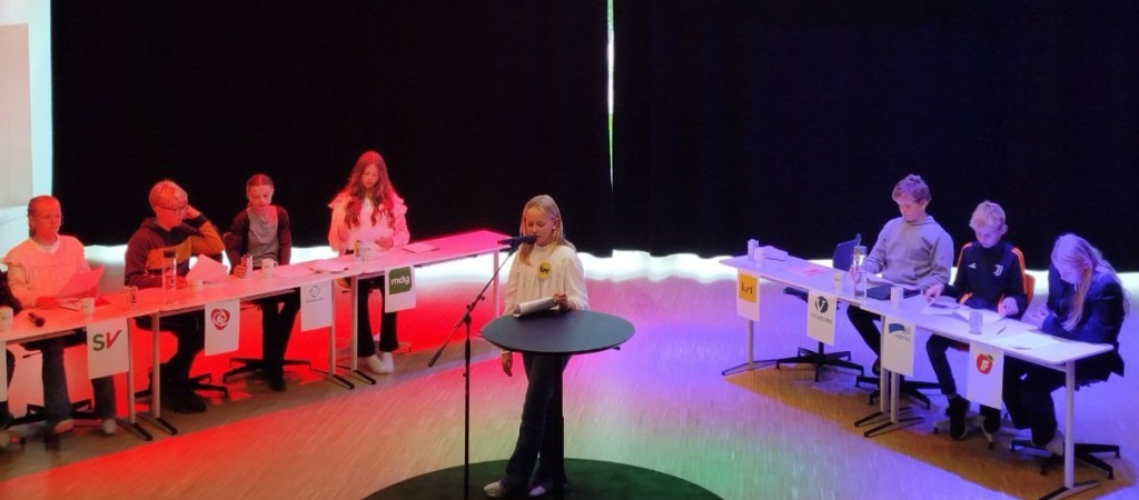 Samtidig som valgkampen i Norge de siste ukene, har elevene lært om partiene. Nå var det tid for avsluttende debatt!