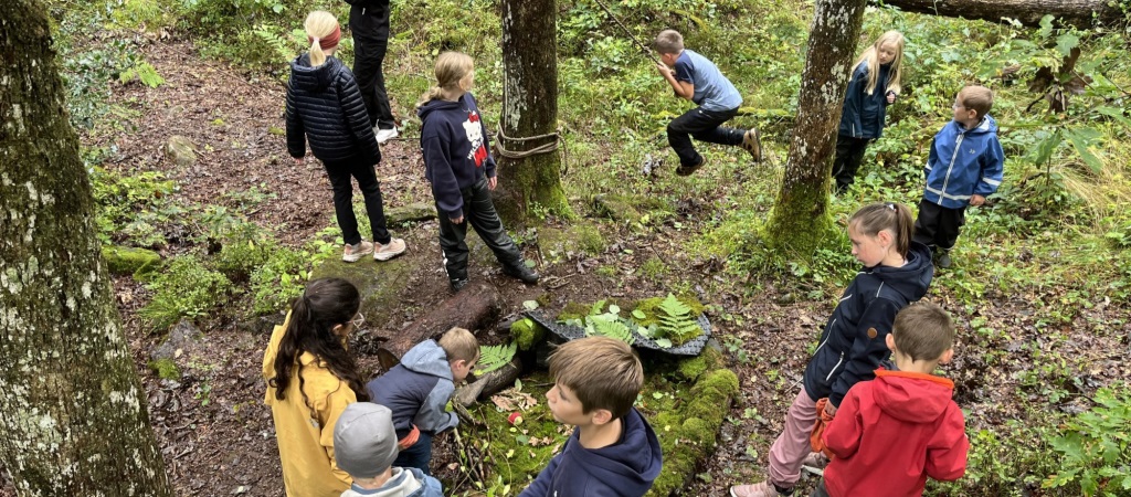 1. og 5. trinn hadde en veldig fin uteskole sammen.