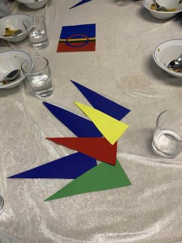 I løpet av uken hadde barnehagen jobbet med samiske perspektiver og barna hadde på ulikt vis fått bli kjent med deler av samisk kultur. Barna fikk bl.a. fargelegge det samiske flagget, mens dedikerte studenter fortalte om hva de ulike fargene og formene i flagget symboliserer. I tillegg fikk barna på Vepsebolet også prege det ene vinduet med malte håndavtrykk i fargene til det samiske flagget. Barna har også blitt kjent med samisk musikk, sagn/fortelling, mat m.m. Da var det naturlig å avslutte uken med samisk inspirert mat, som var lapskaus m/reinskav (inspirert av Bidos). Barna var også med å lage Gahkko, som er et samisk festbrød. Det hele smakte fortreffelig, og selvgjort er som oftest velgjort 🙌