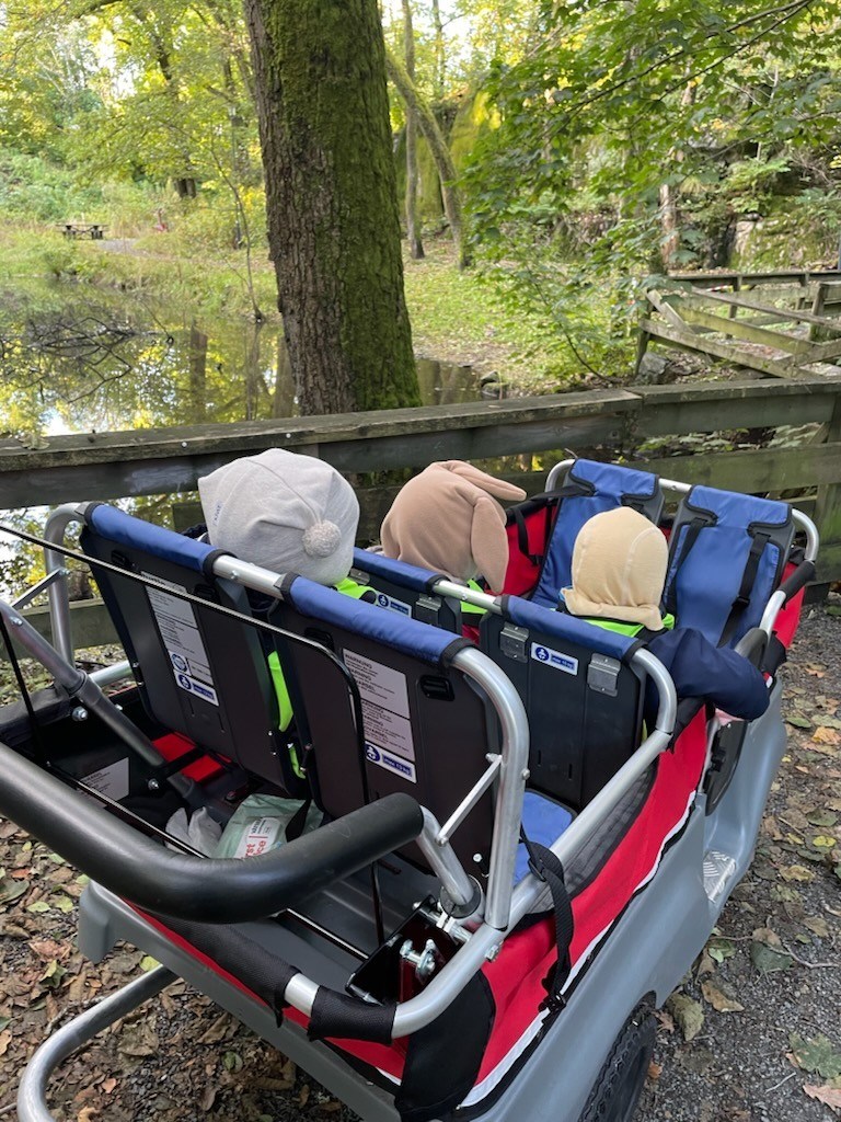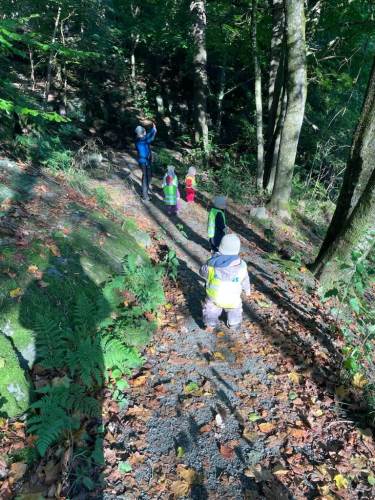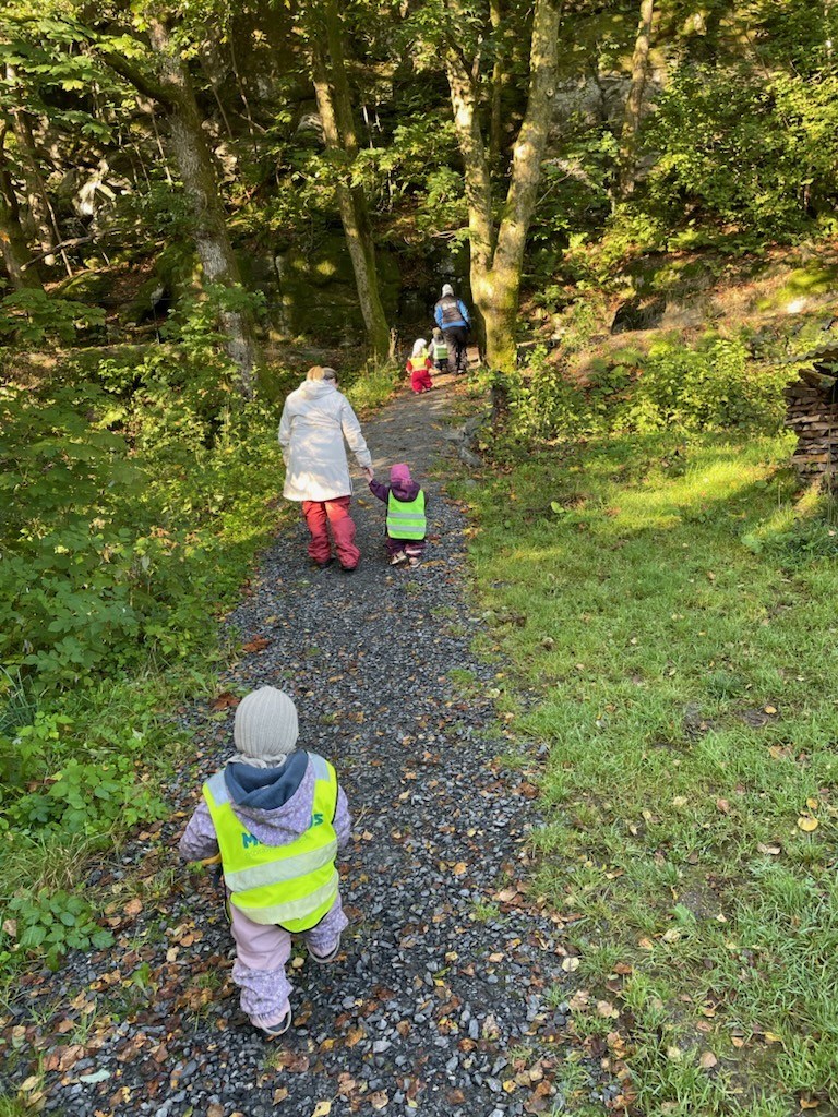 skulle. Vi har turer i skogen som ligger bak barnehagen, da slipper vi