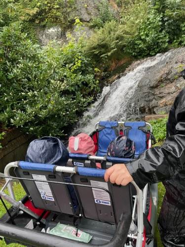 Vi har hatt turer til "fossen" ved Ravnedalen