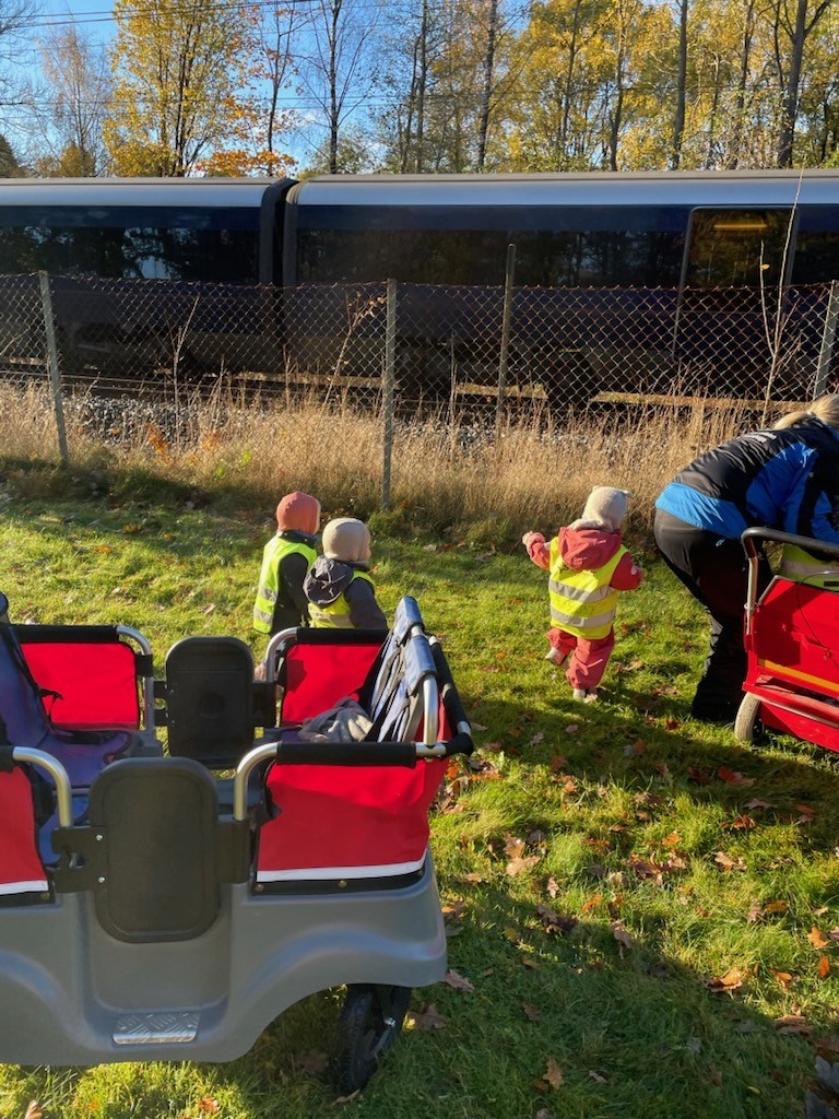 de nesten kommer og setter seg oppi vognene med oss. Vi har hatt tur til togskinnene
