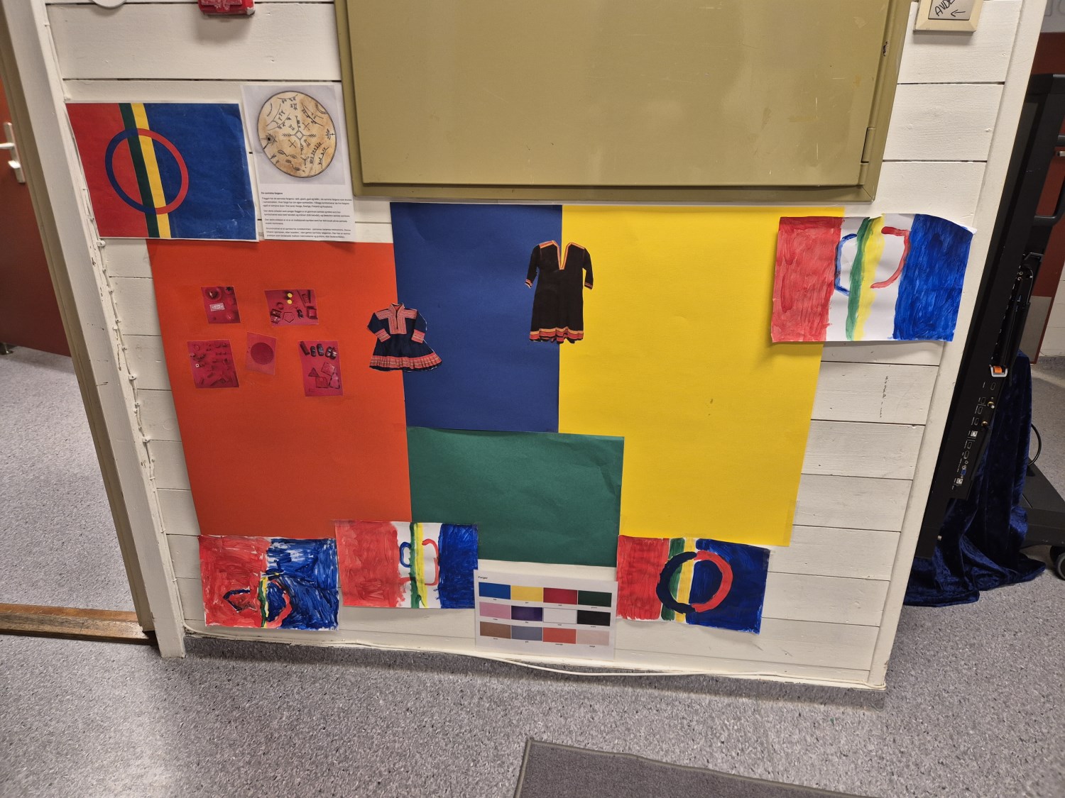 • Henger opp Sámi leavga. (det samiske flagget)