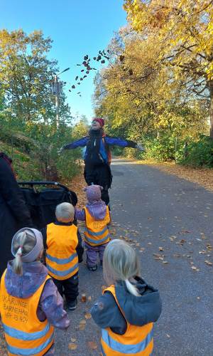Vi på avdeling Krabbe benytter vi oss mye av nærmiljøet rundt oss! Tur til "Spøki" er en av de spennende turplassene i nærmiljøet vårt. Barna fikk mulighet til å utforske omgivelsene gjennom lek, undring og sanseerfaringer. Vi så på trærne som har skiftet farge, besøkte Spøki og øvde oss på å ferdes trygt i terrenget.