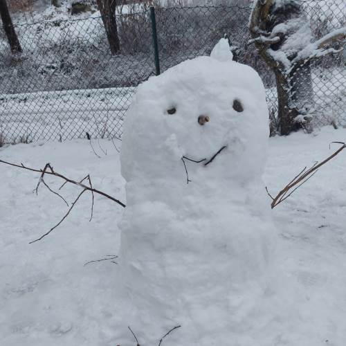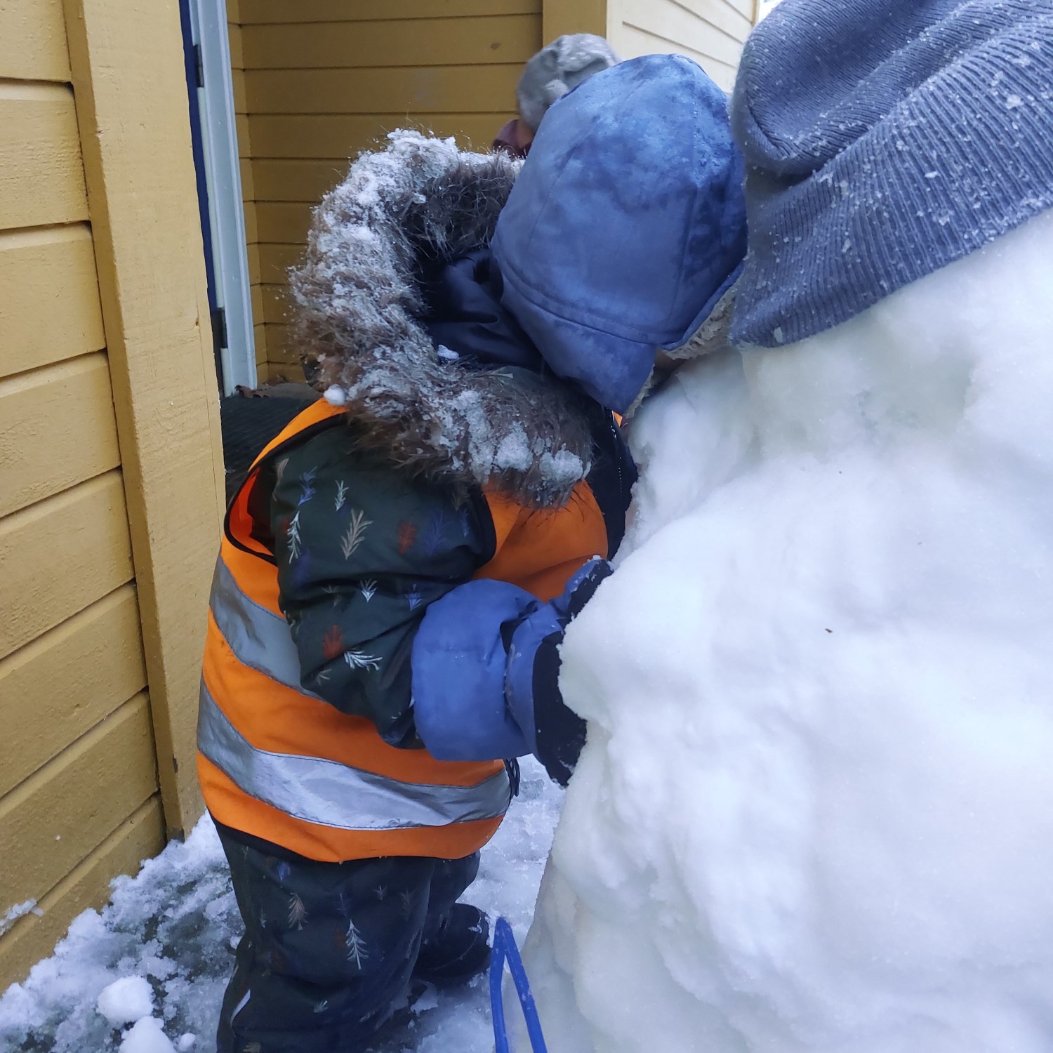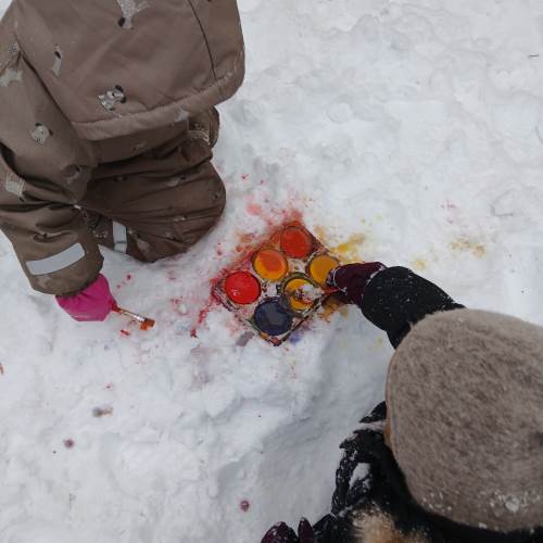 i snøen, laget snømann, malt i snøen og utforsket is i ulike former og