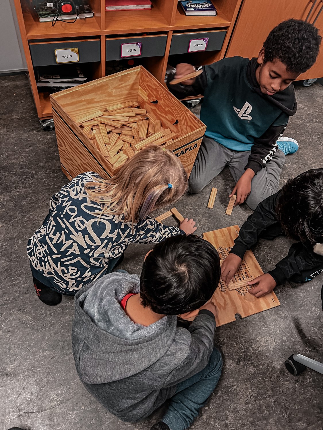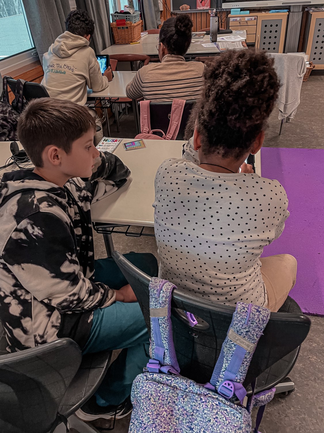 Tirsdag startet dagen med en faddertime. 4B inviterte fadderbarna på presentasjon og lek.