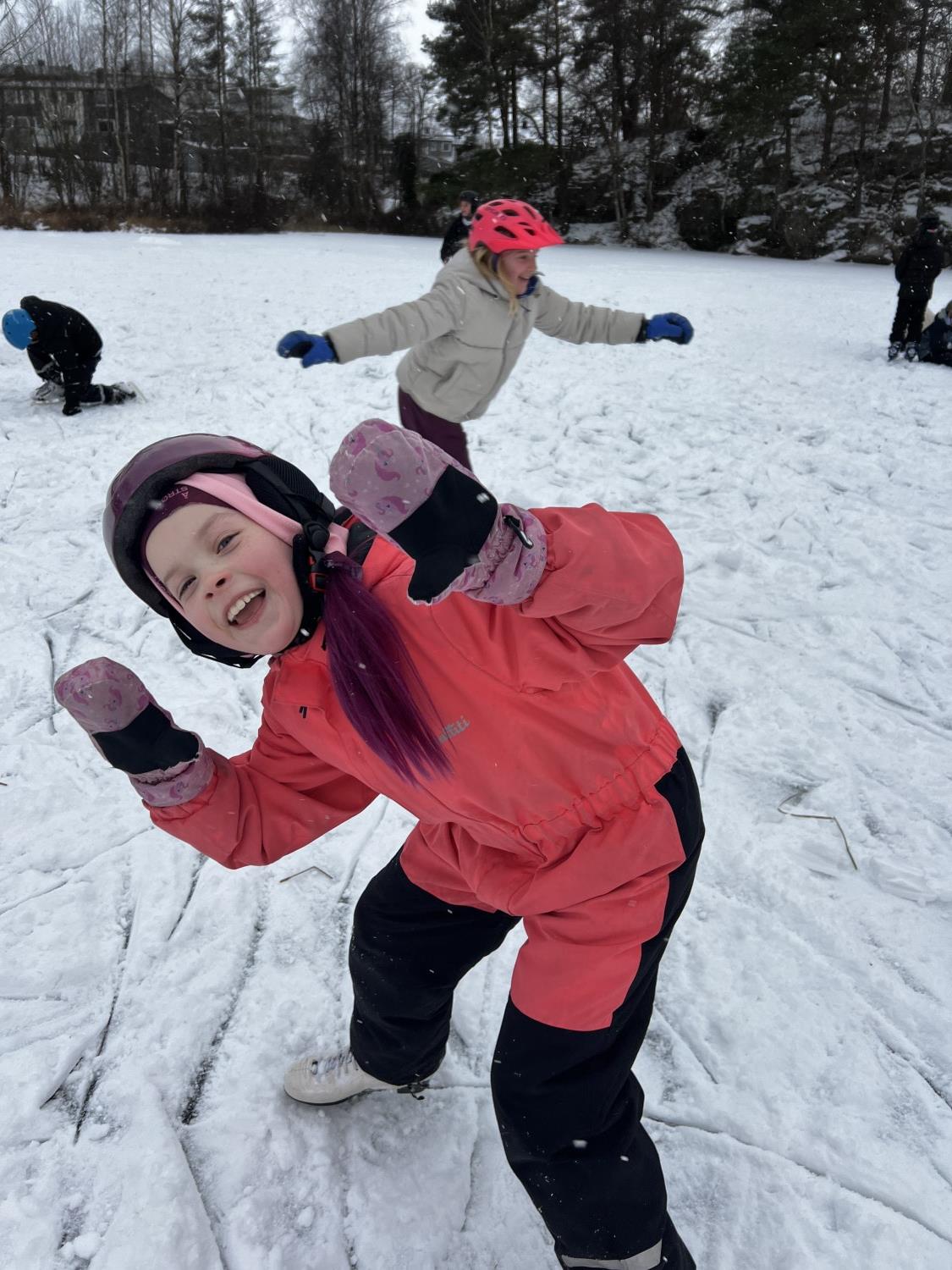 Vel fremme brukte vi dagen på å få på skøyter, leke på isen, øve på å gå, hjelpe hverandre, motivere hverandre og ha det gøy sammen.