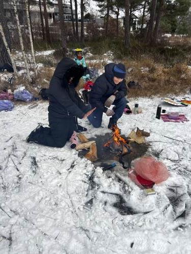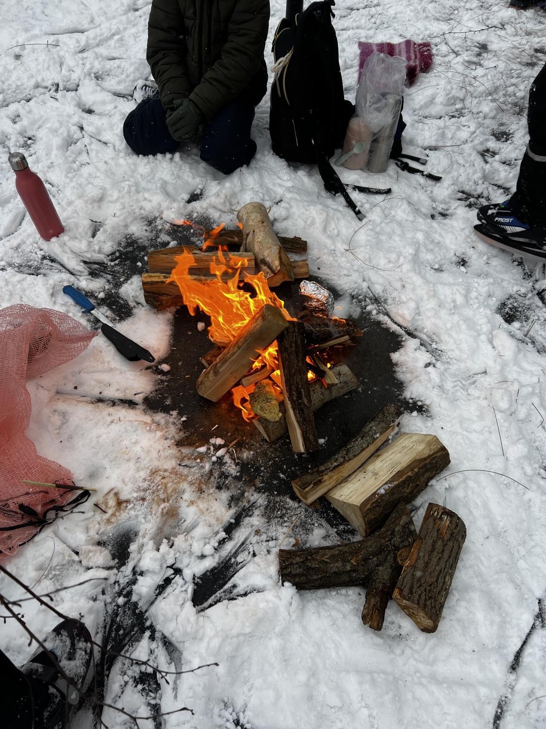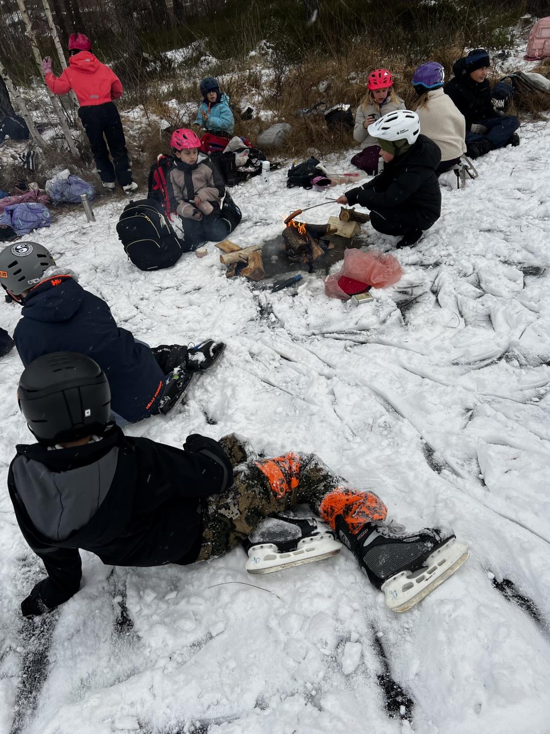 Bålet ble et fint samlingspunkt når vi skulle spise matpakkene våre. Mange koste seg med varm mat, og andre koste seg med varmen fra bålet.