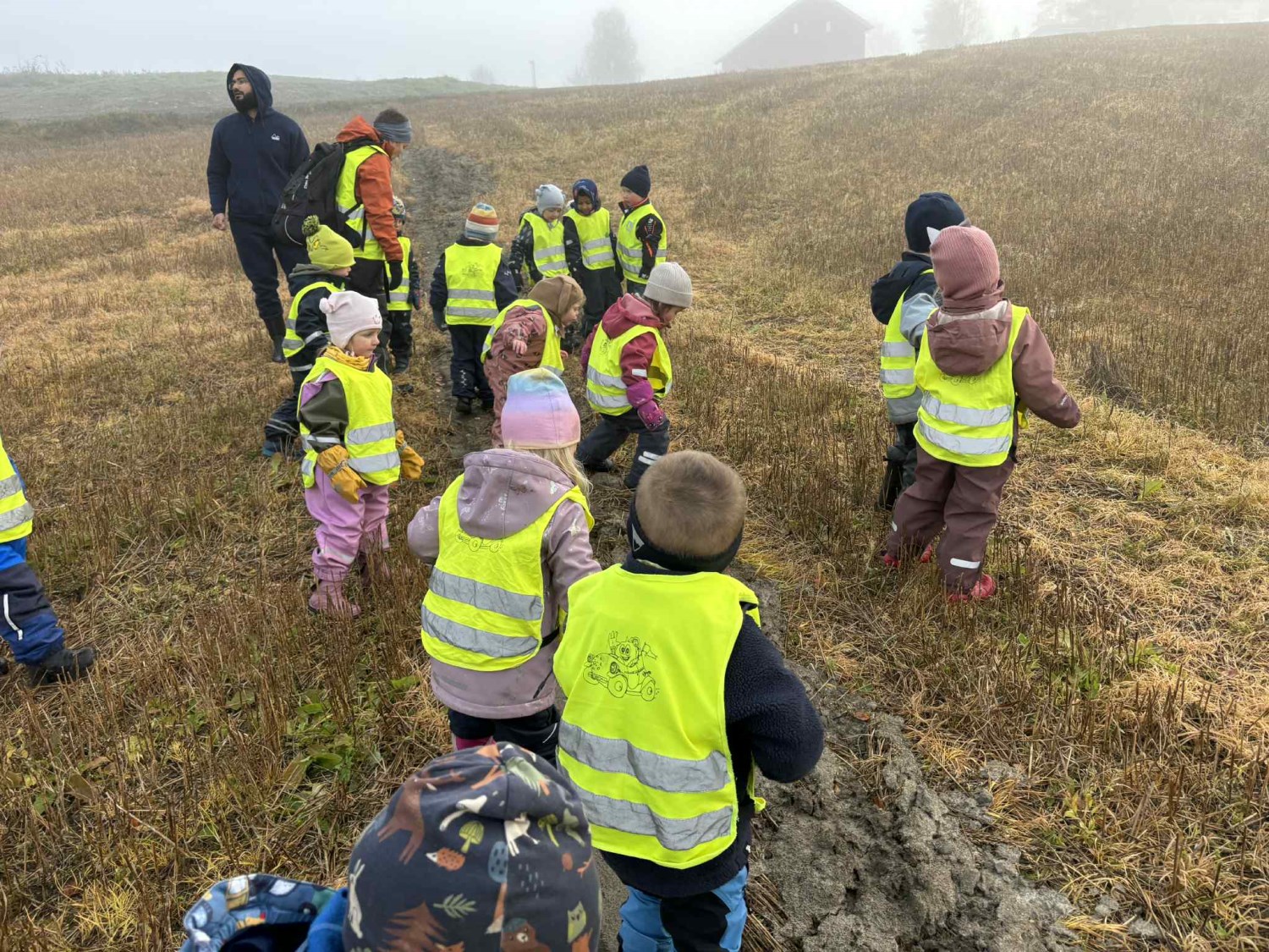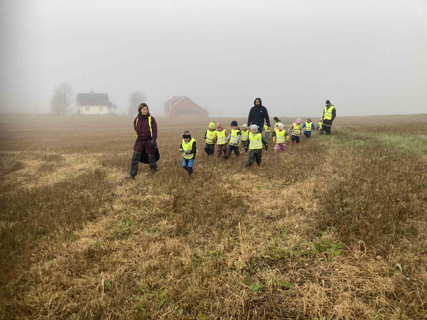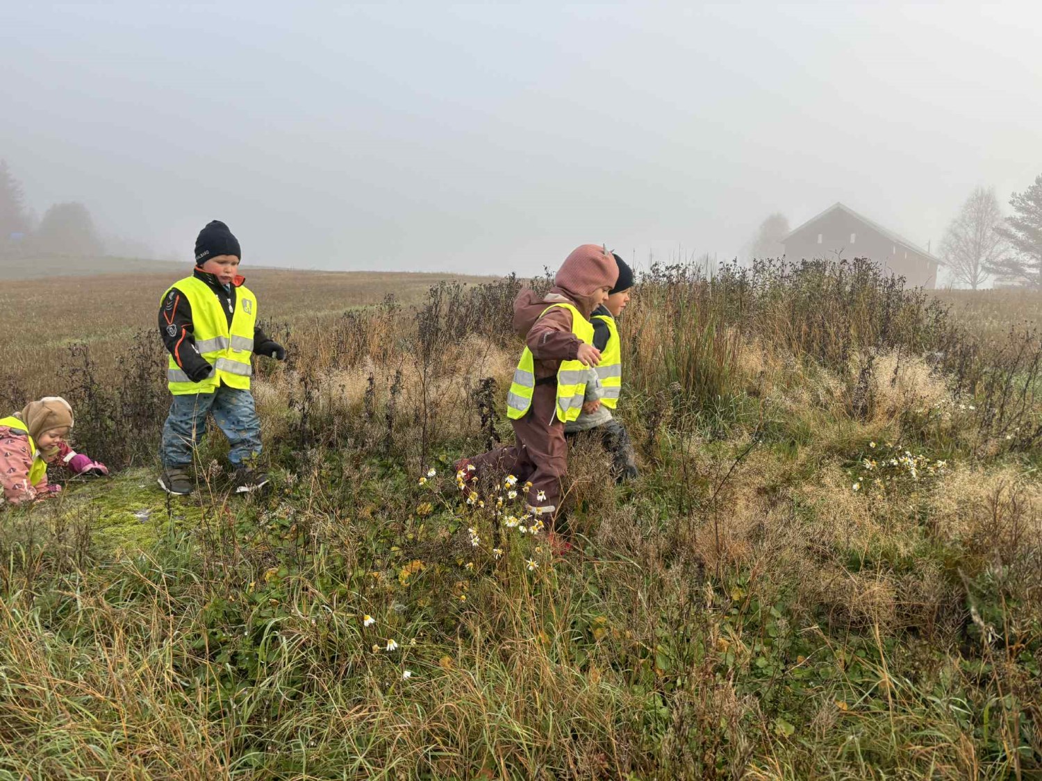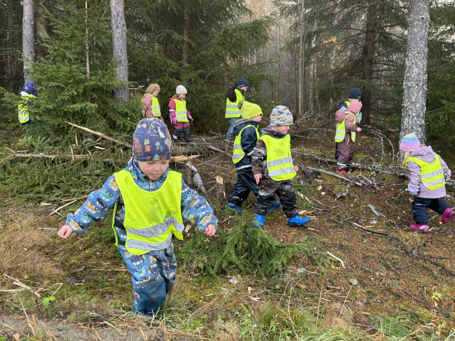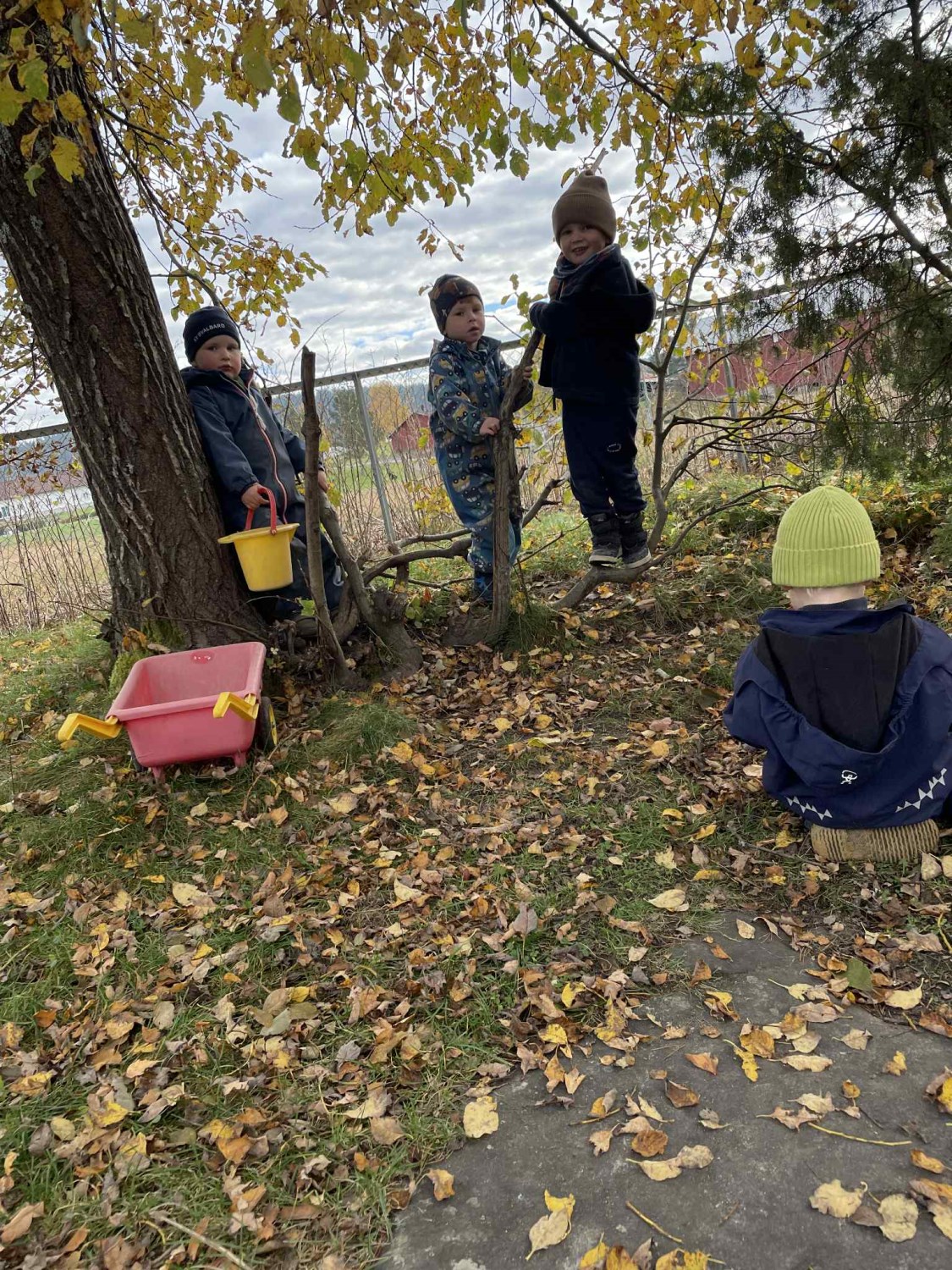 Onsdag gikk vi tur til griseberget for å finne»skatter» som vi kan lage gaver av til jul. Barna syns det var spennende å få gå på jordet og å gå på oppdagelsesferd.