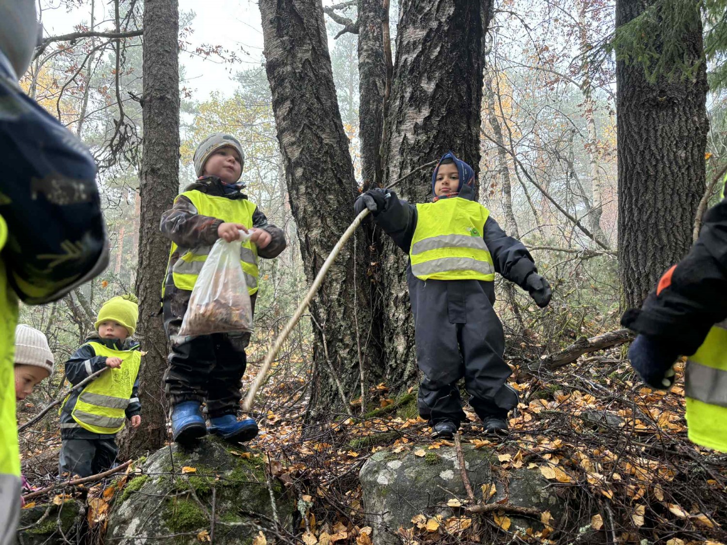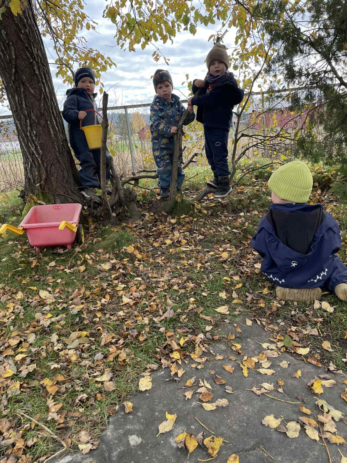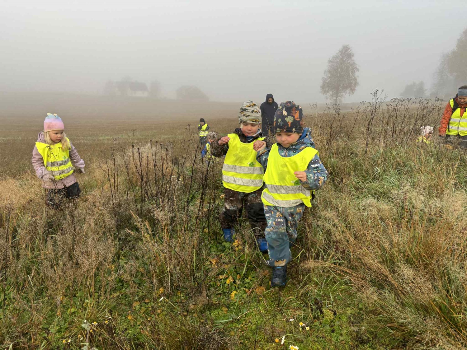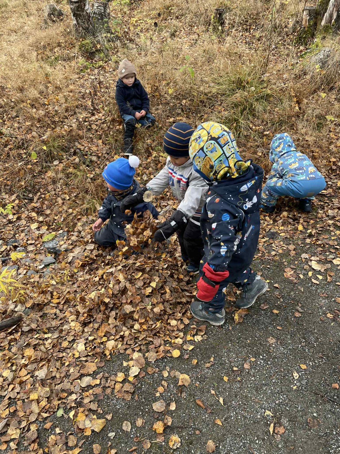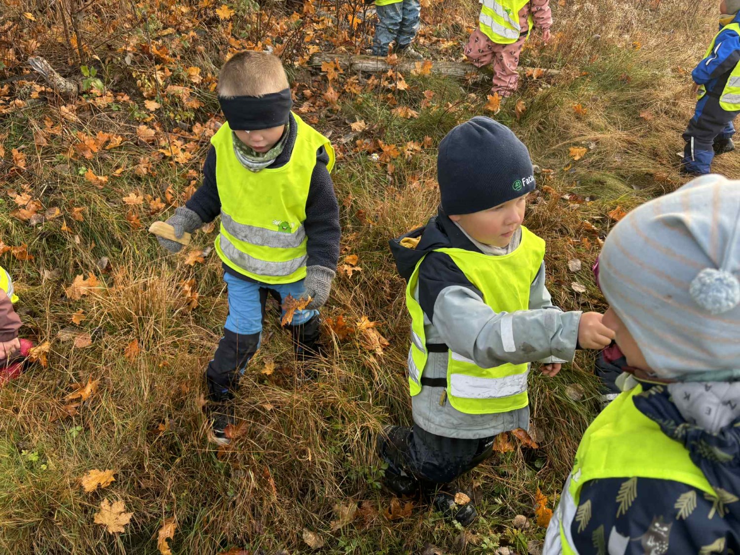 Onsdag gikk vi tur til griseberget for å finne»skatter» som vi kan lage gaver av til jul. Barna syns det var spennende å få gå på jordet og å gå på oppdagelsesferd.