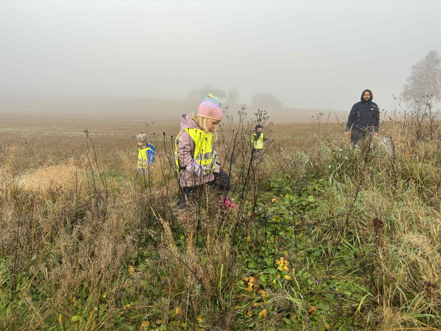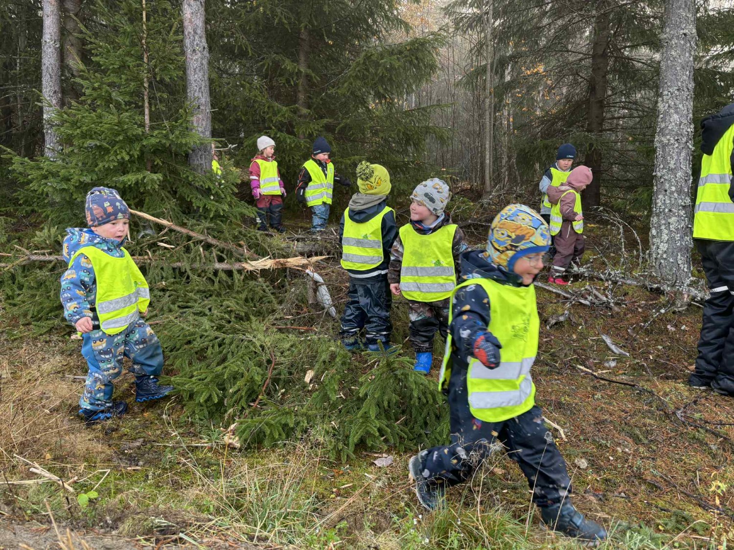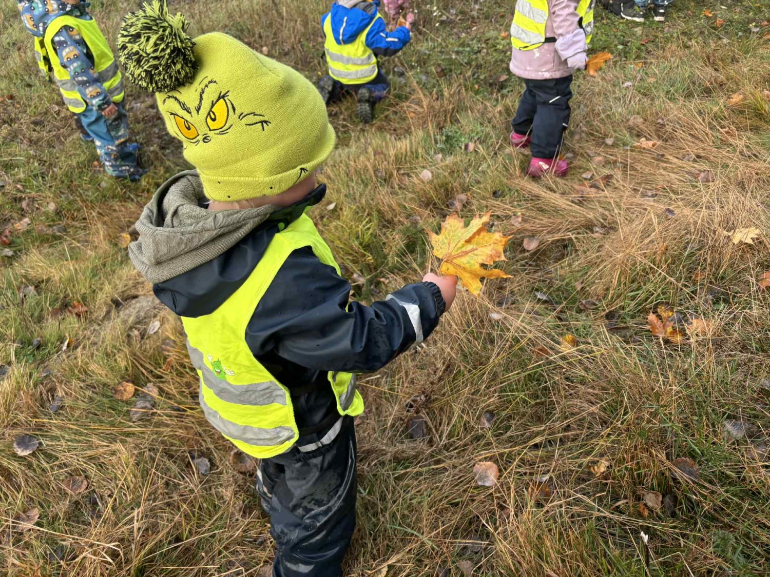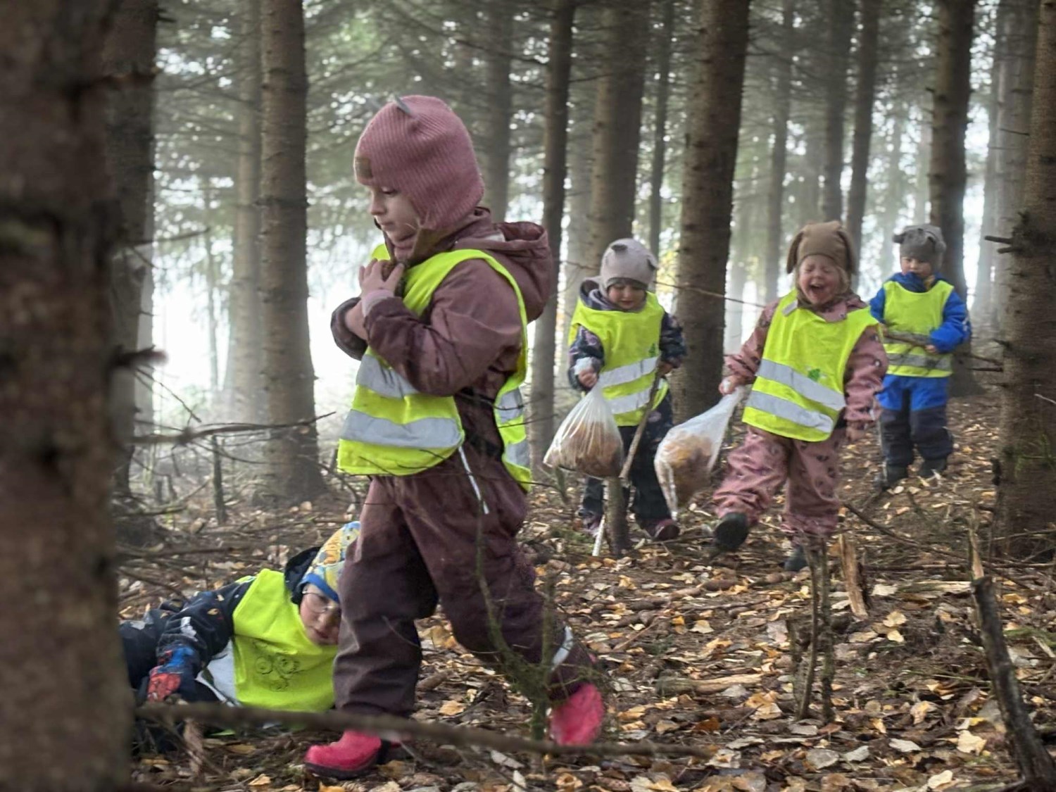 Onsdag gikk vi tur til griseberget for å finne»skatter» som vi kan lage gaver av til jul. Barna syns det var spennende å få gå på jordet og å gå på oppdagelsesferd.