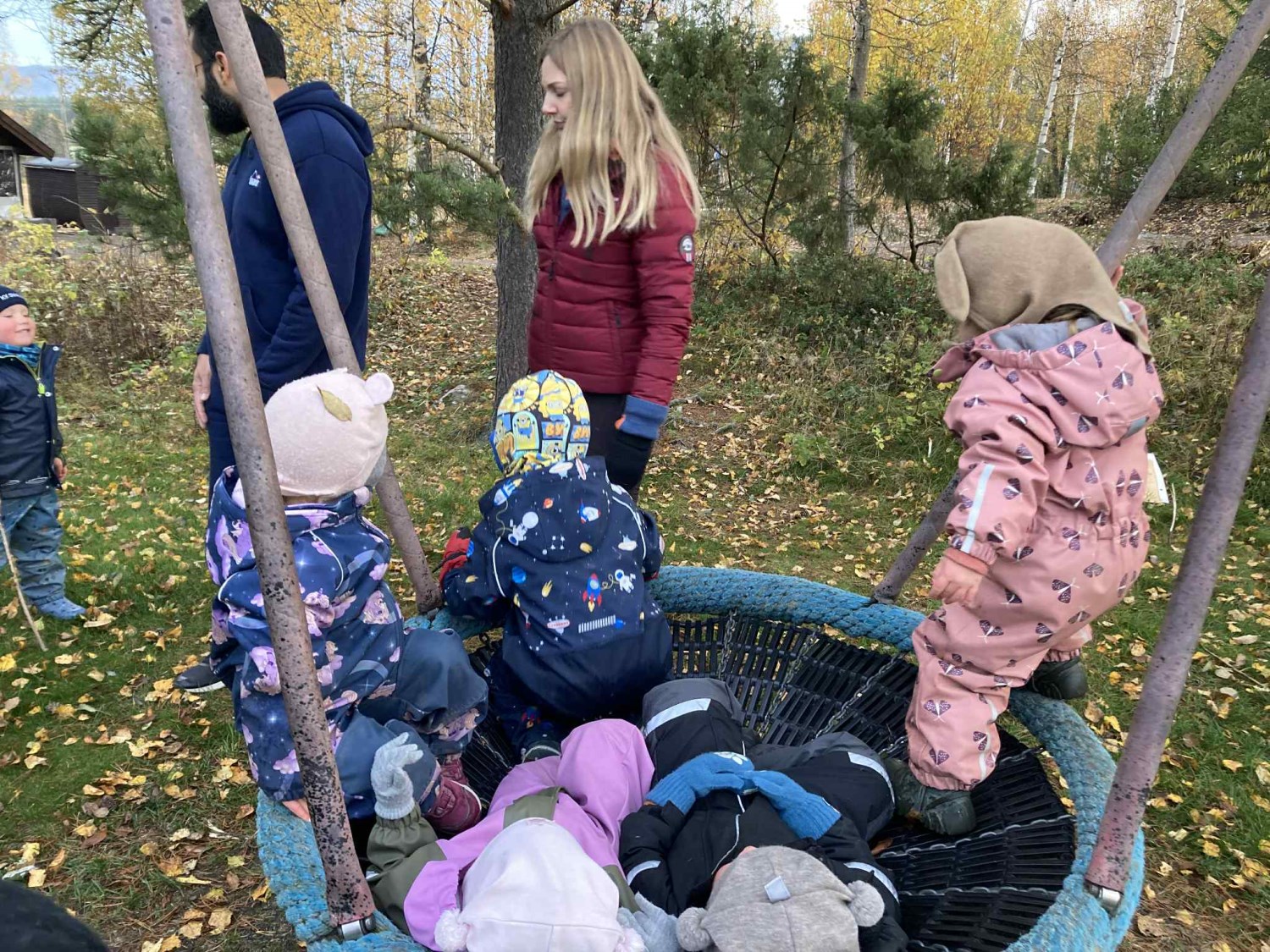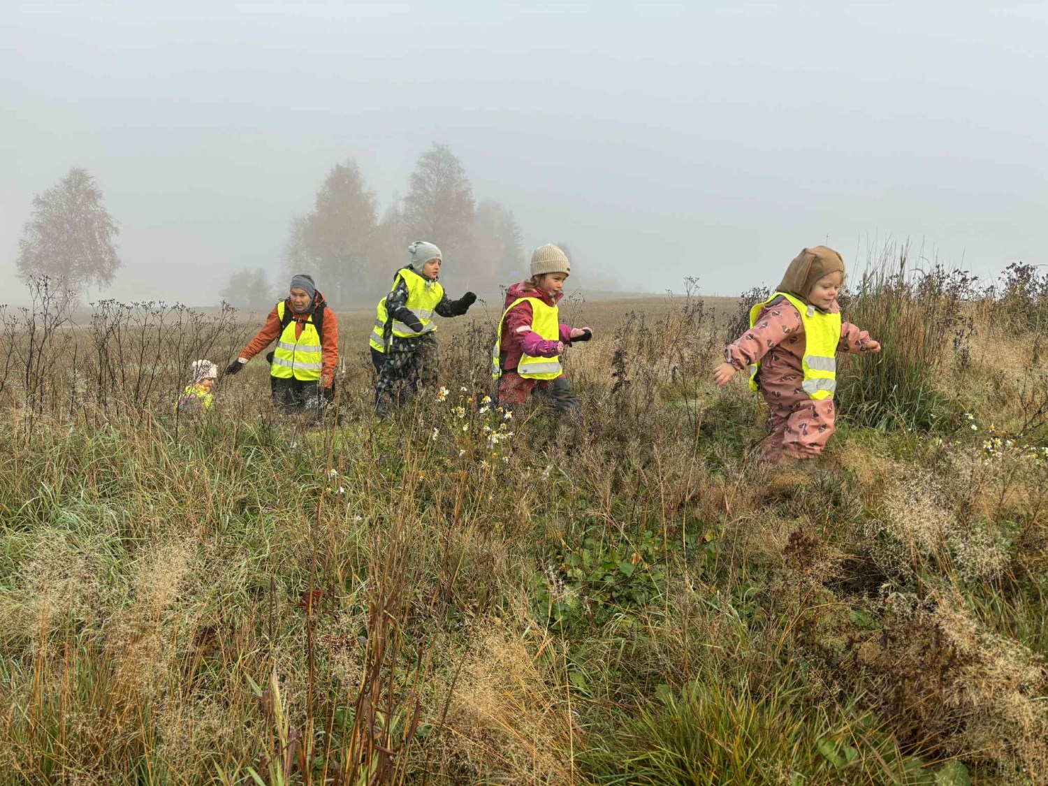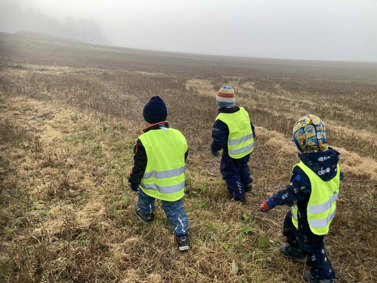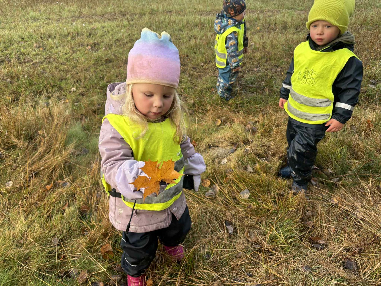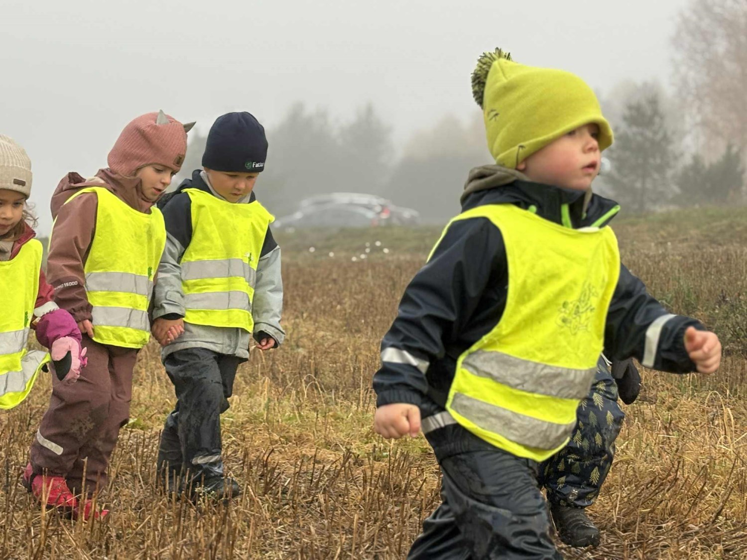 Onsdag gikk vi tur til griseberget for å finne»skatter» som vi kan lage gaver av til jul. Barna syns det var spennende å få gå på jordet og å gå på oppdagelsesferd.