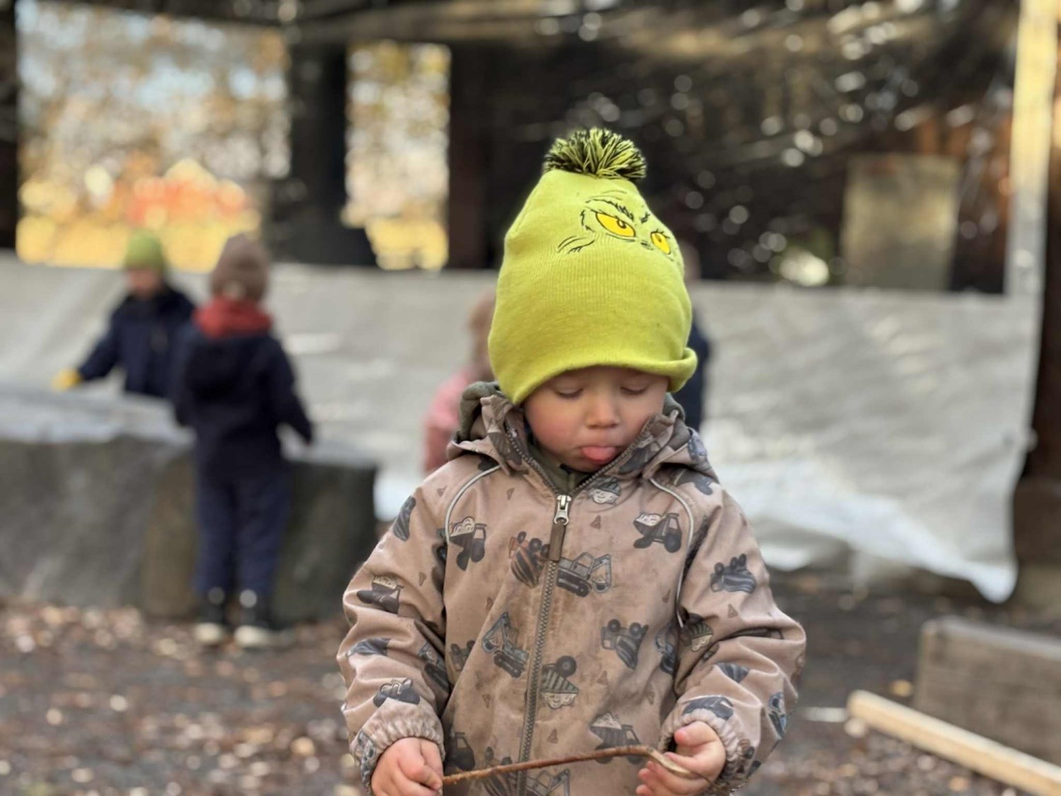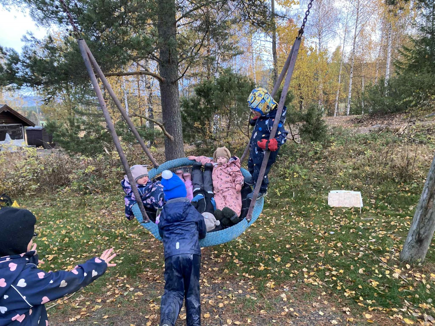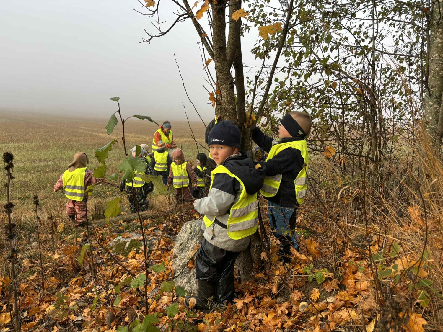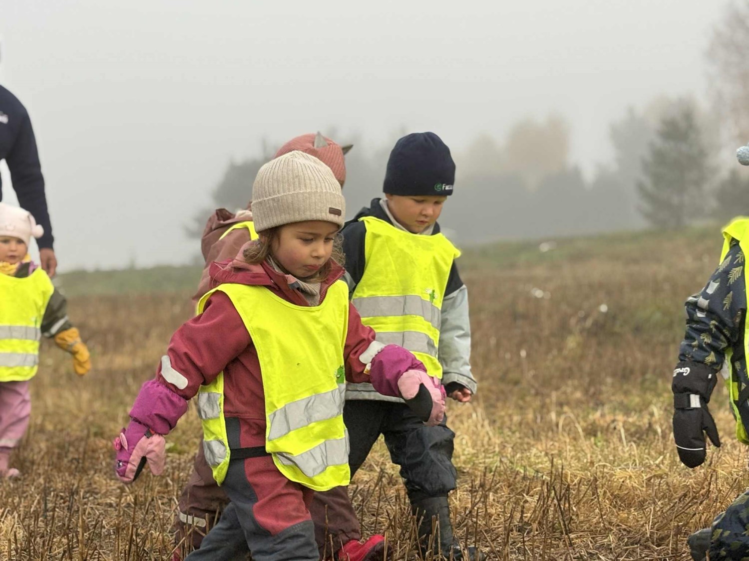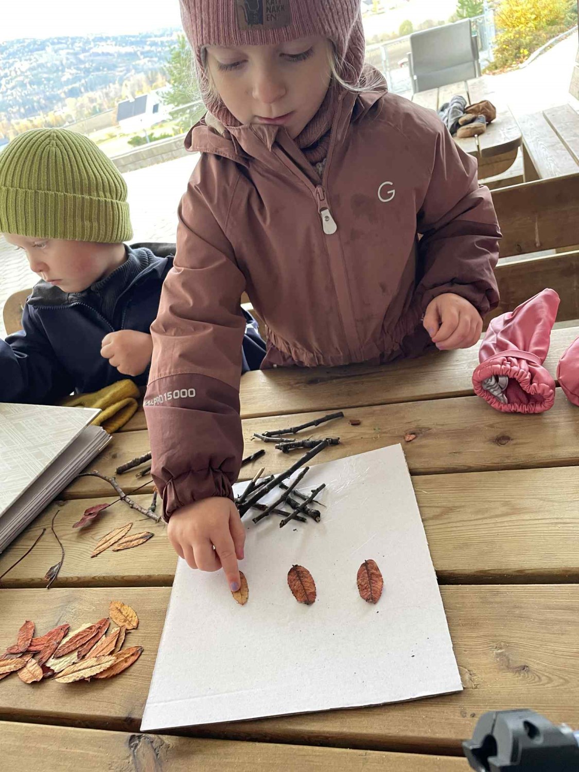 Onsdag gikk vi tur til griseberget for å finne»skatter» som vi kan lage gaver av til jul. Barna syns det var spennende å få gå på jordet og å gå på oppdagelsesferd.