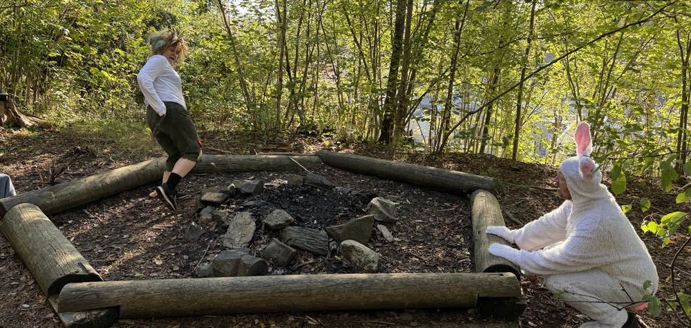 så langt – han har bare lyst til å leke litt ved bålplassen når det ikke er